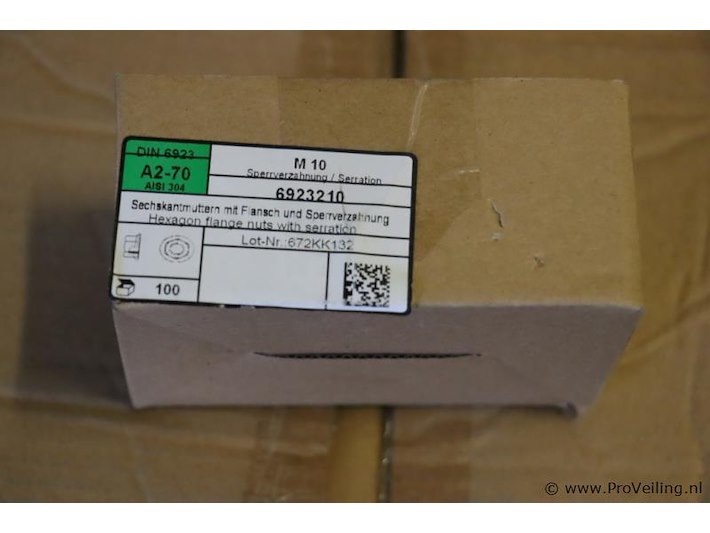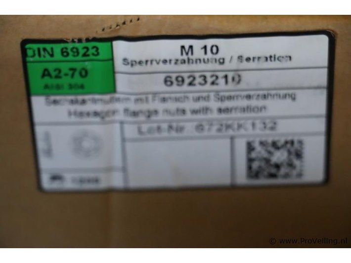 Zeskantige flensmoeren met kartels; maat M10; inhoud 100 stuks; nieuw in doos.