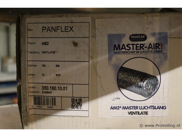 Luchtslang: merk Panflex; afmetingen ca. Ø 160mm x 10mtr (l); zie afbeeldingen.