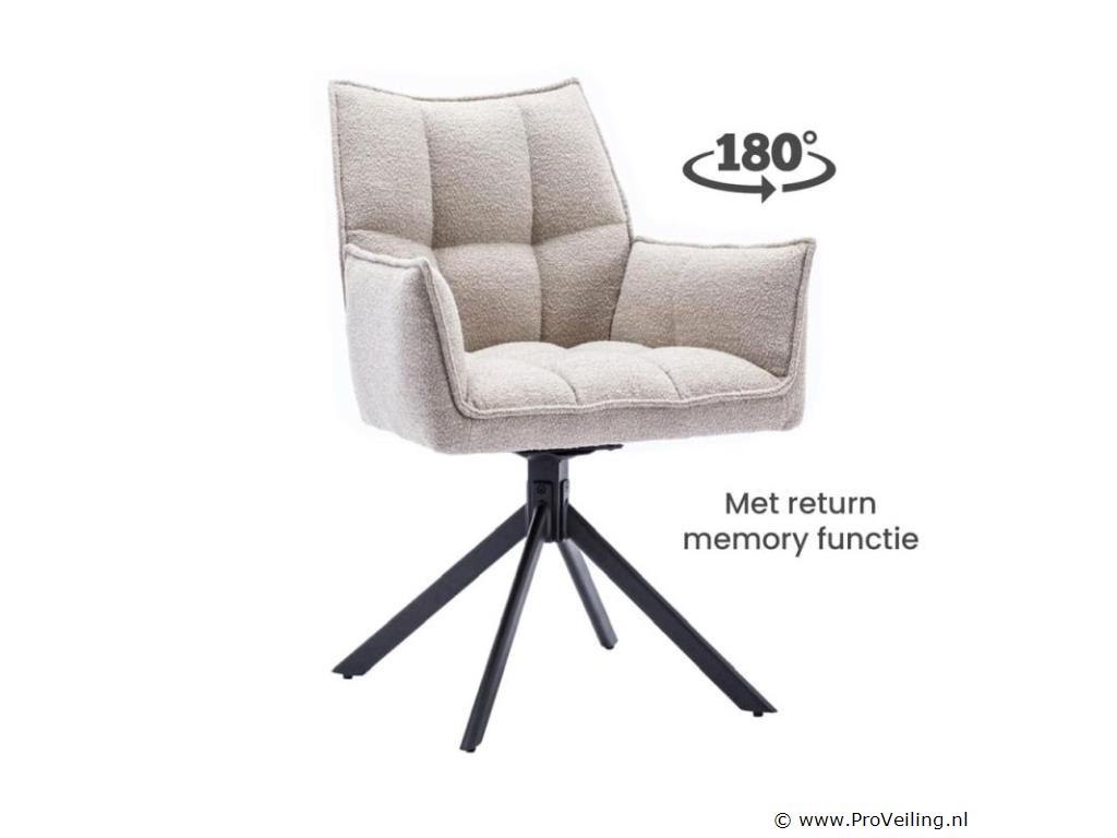 4x eetkamerstoel prego met arm - draaibaar - alpine 01 beige - boucle stof