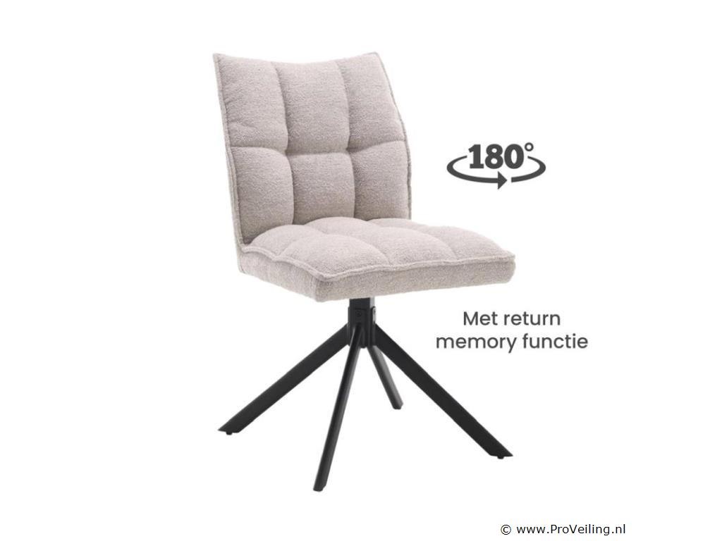 4x Eetkamerstoel Prego zonder arm - Draaibaar - Alpine 01 beige / Boucle stof - Afmetingen circa : Breedte 57 cm, Zithoogte 49 cm, Zitdiepte 49 cm, Diepte 66 cm, Hoogte 87 cm.