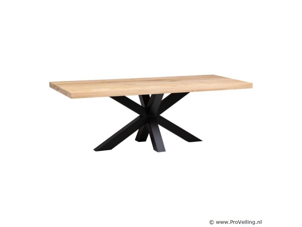1x recht tafel eiken - 220x100 cm - massief eiken - spinpoot metaal 5x10