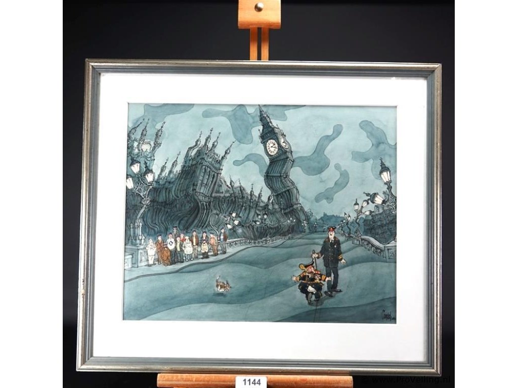In passe-partout, achter glas en in houten lijst. H49cm/B57cm/1900Gr. Lees a.u.b. ook de extra veilinginformatie voor deze veiling. G-E-E-N transport of bezorging door Proveiling mogelijk. Eventueel transport of bezorging alleen door u zelf te regelen via b.v. www.brenger.nl .