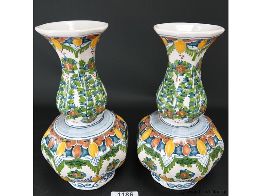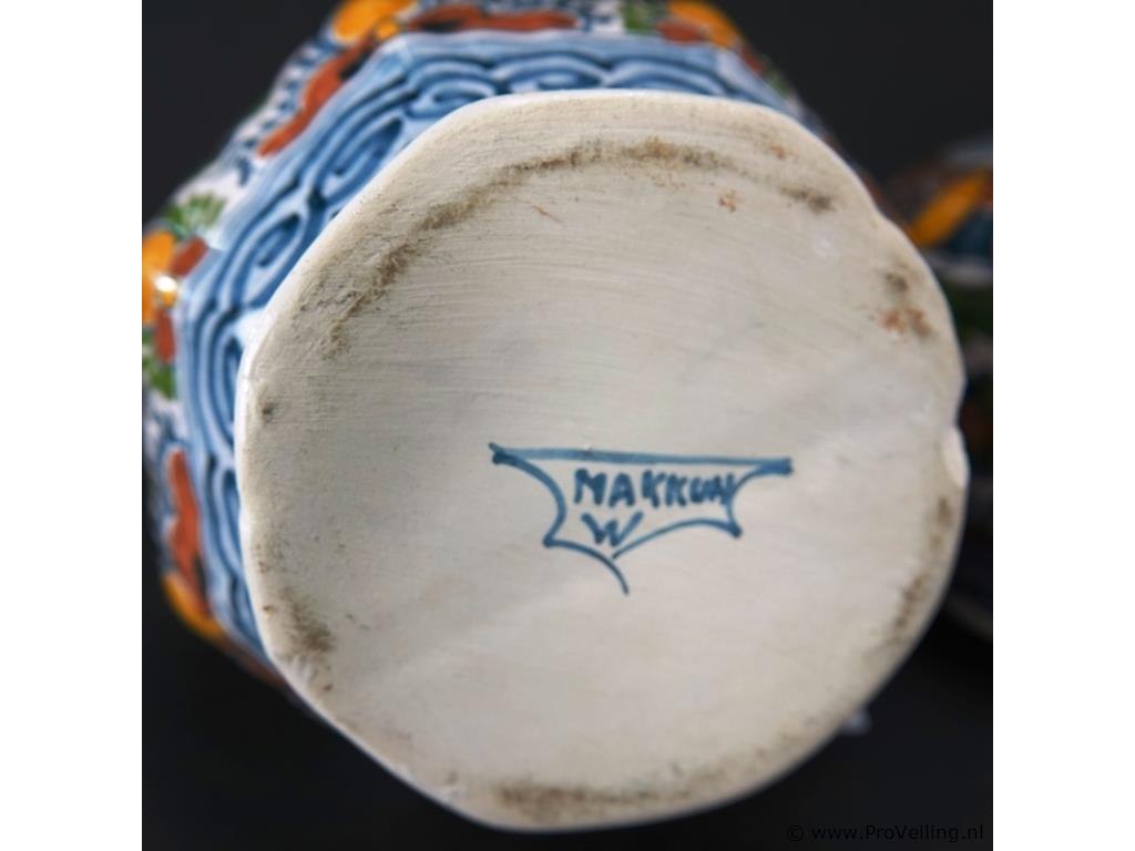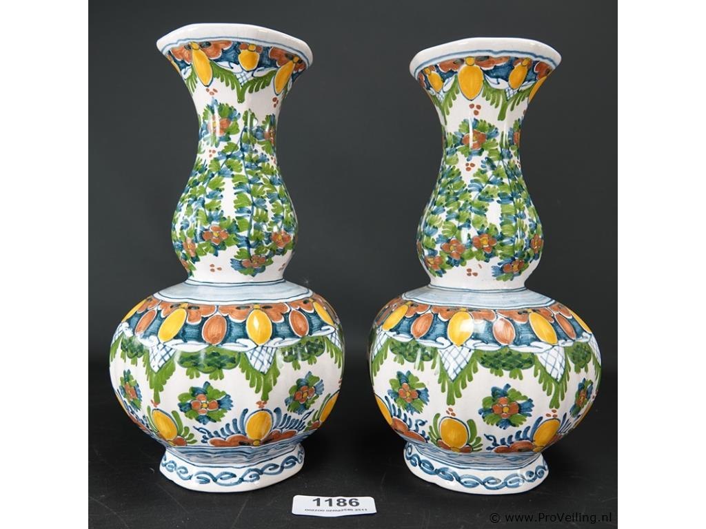 Paar oude/antieke makkum kastvazen