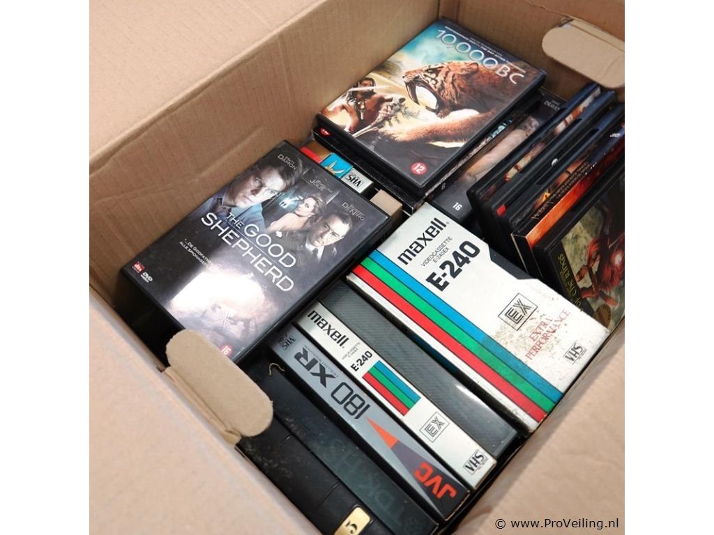 Grote partij DVD's e.d. in verhuisdoos. H38cm/L48cm/B33cm/5000Gr. Lees a.u.b. ook de extra veilinginformatie voor deze veiling. G-E-E-N transport of bezorging door Proveiling mogelijk. Eventueel transport of bezorging alleen door u zelf te regelen via b.v. www.brenger.nl .