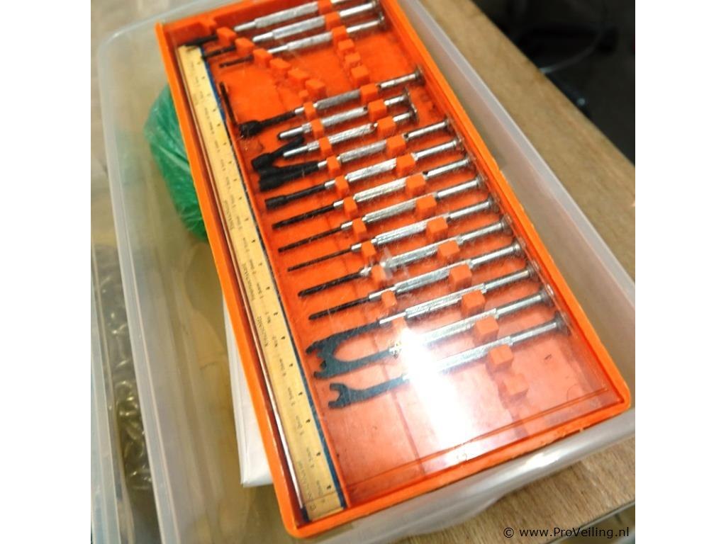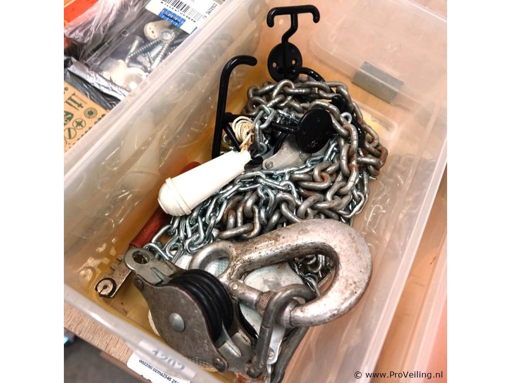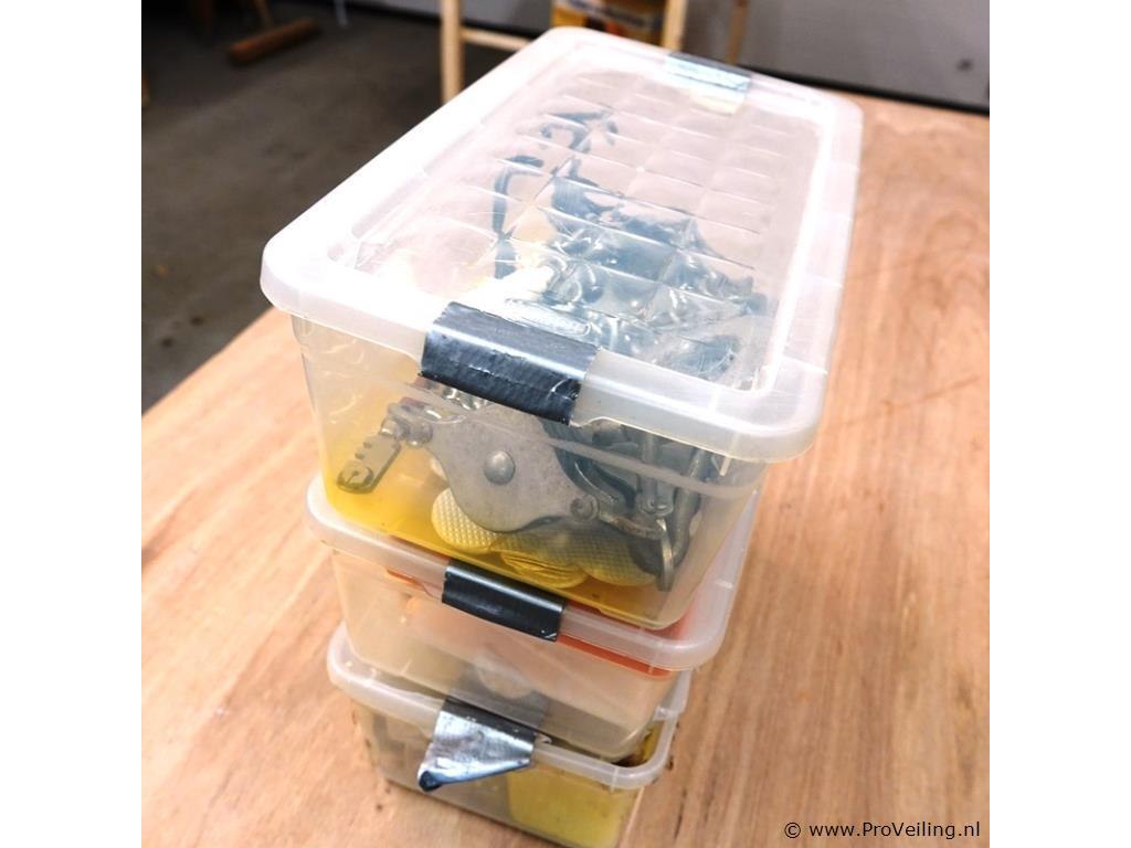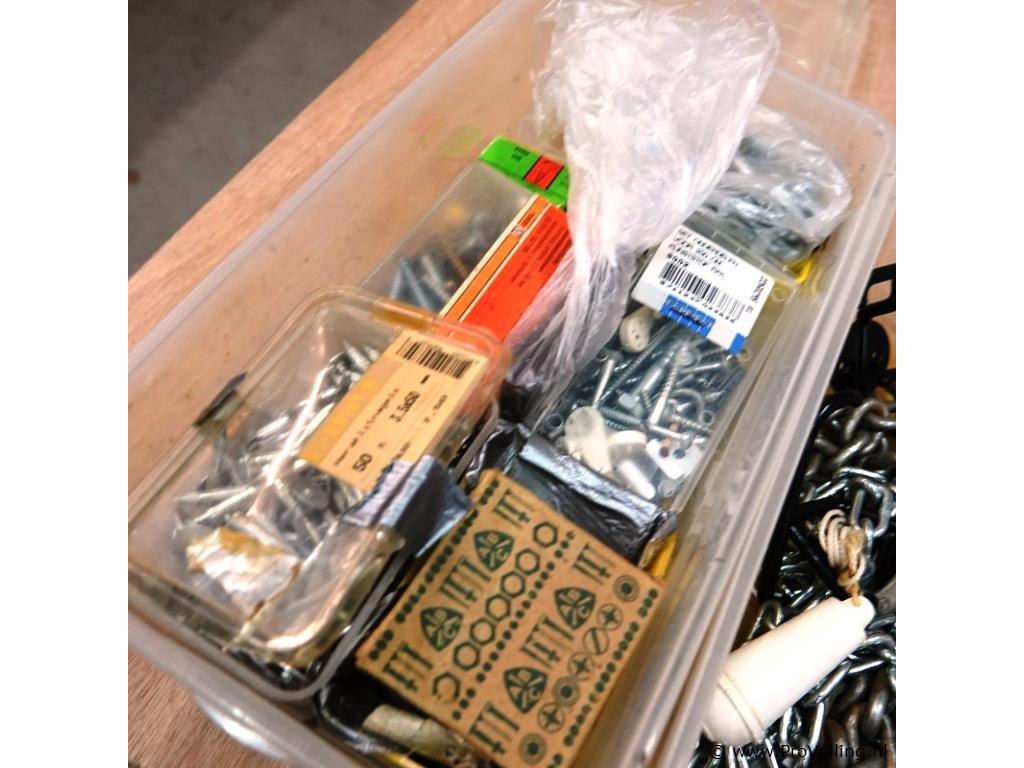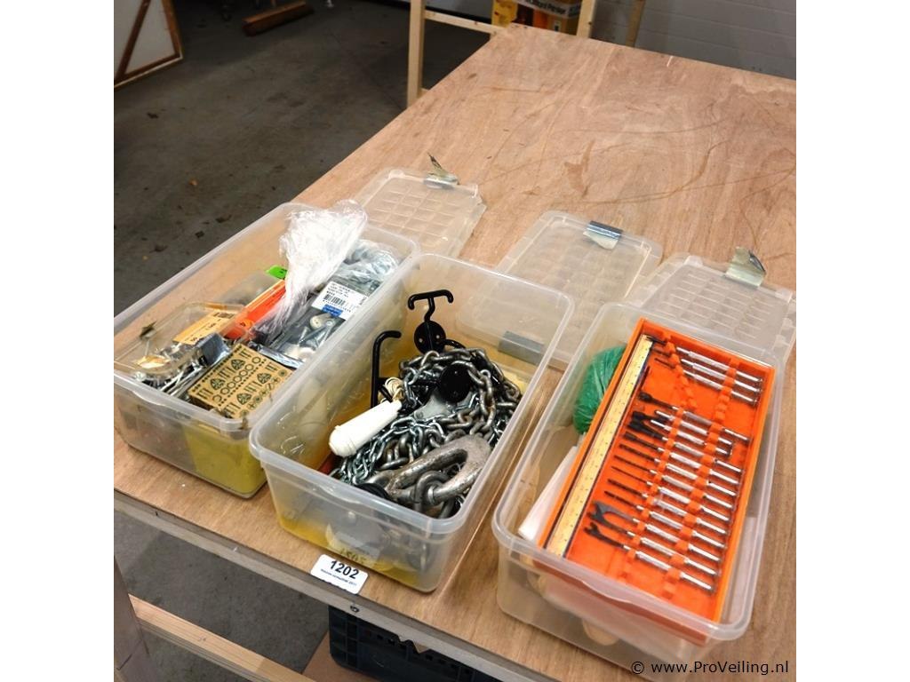 3 opbergboxen met ijzerwaren, gereedschap, e.d.