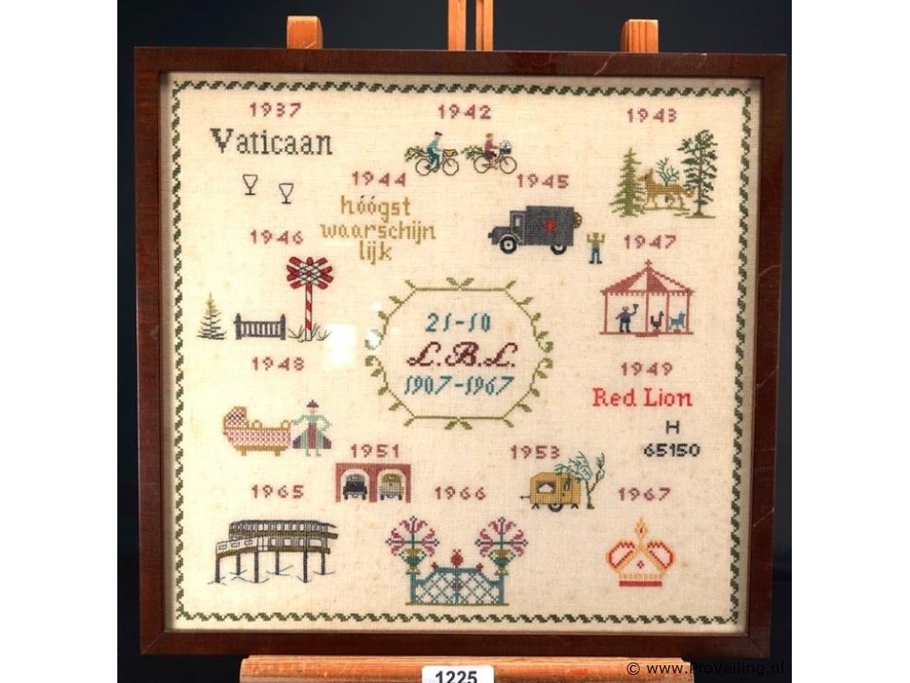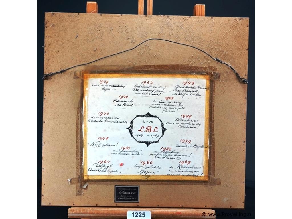 Achter glas en in houten lijst. H40cm/B43cm/1470Gr. Lees a.u.b. ook de extra veilinginformatie voor deze veiling. G-E-E-N transport of bezorging door Proveiling mogelijk. Eventueel transport of bezorging alleen door u zelf te regelen via b.v. www.brenger.nl .
