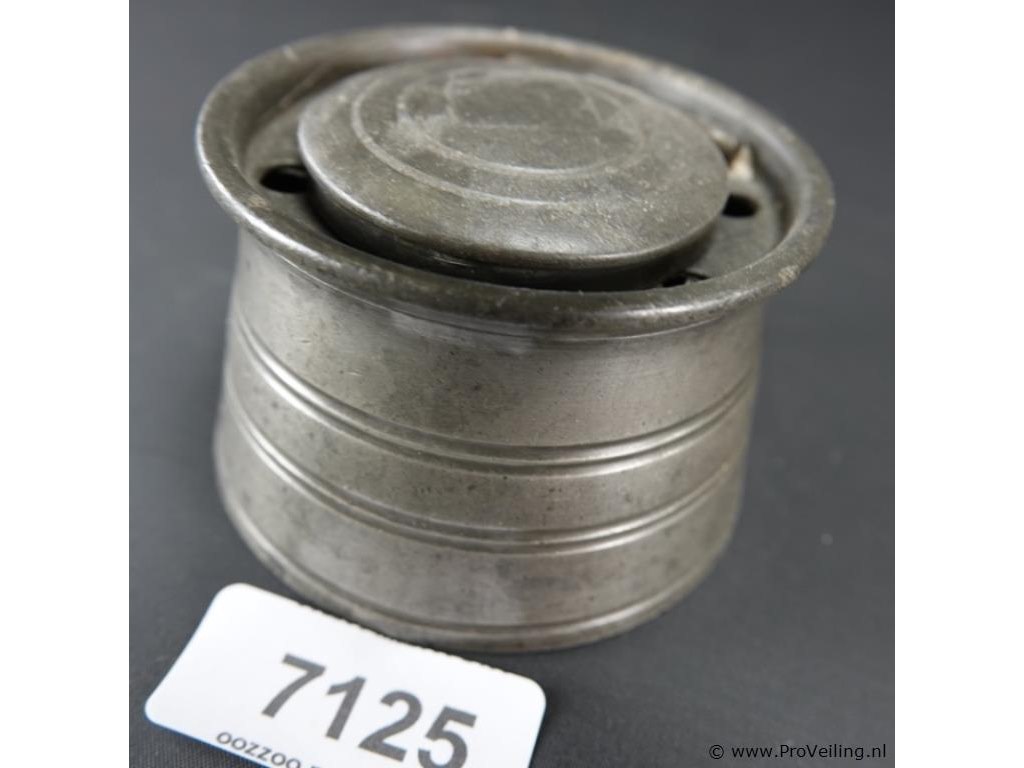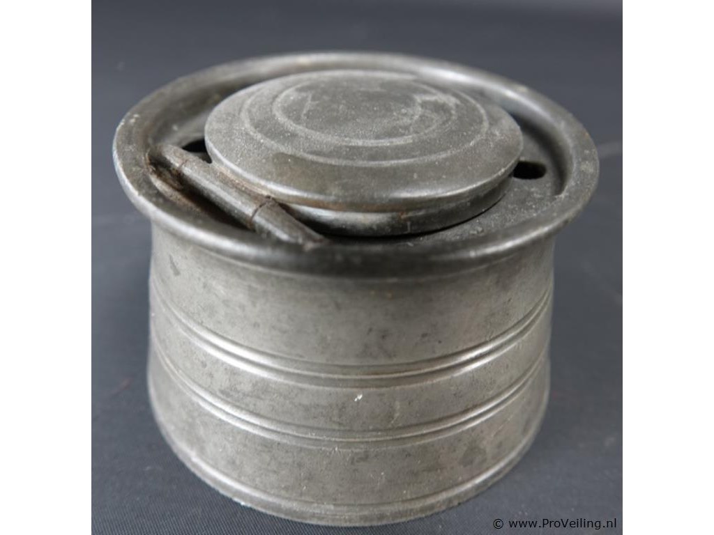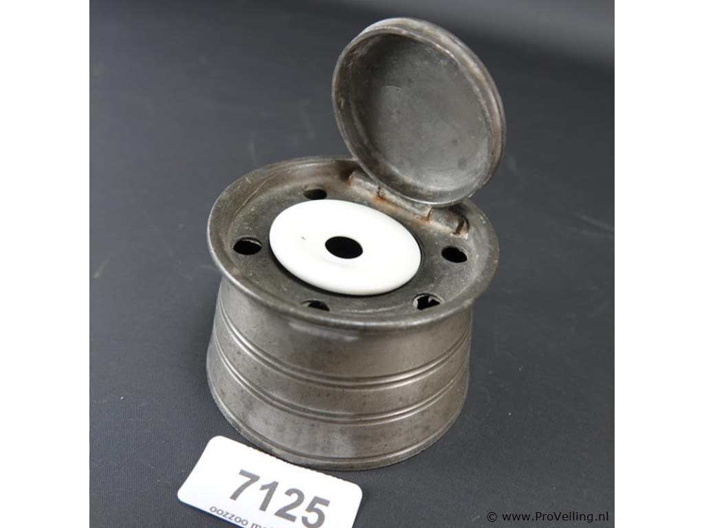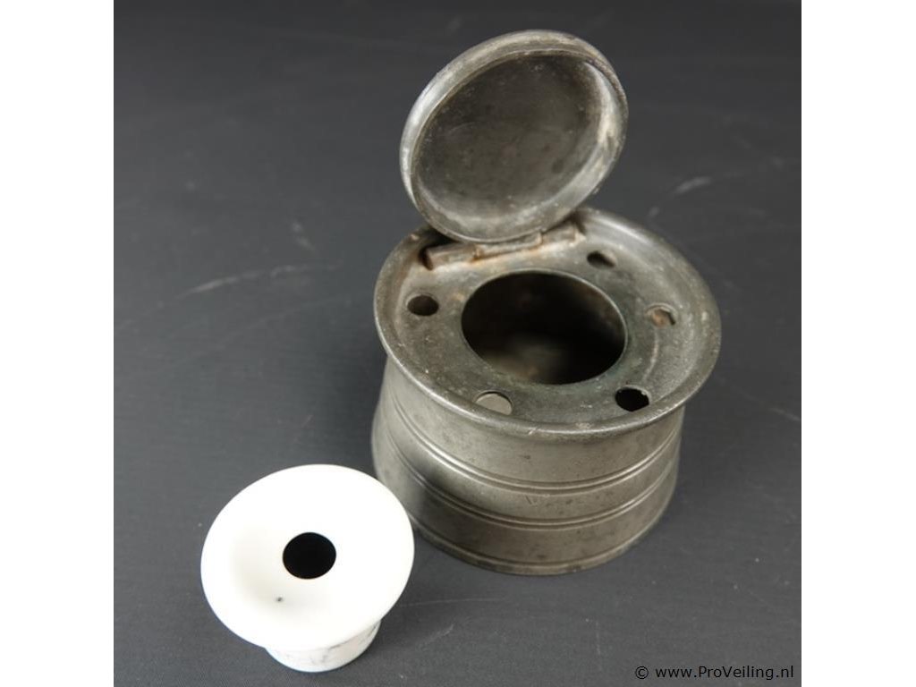 Antieke (18 of 19de eeuw) tinnen inktpot met porseleinen inktvat