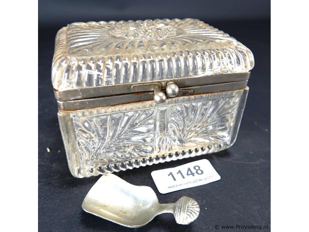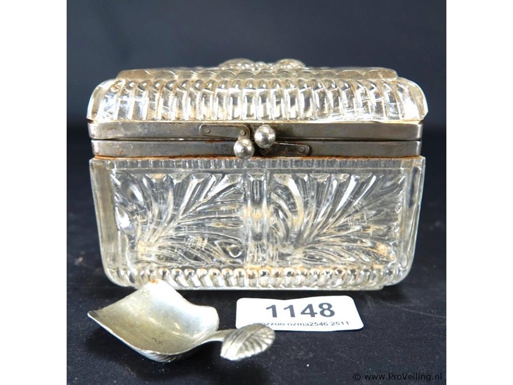 Kristallen suikerpot met schep met montuur