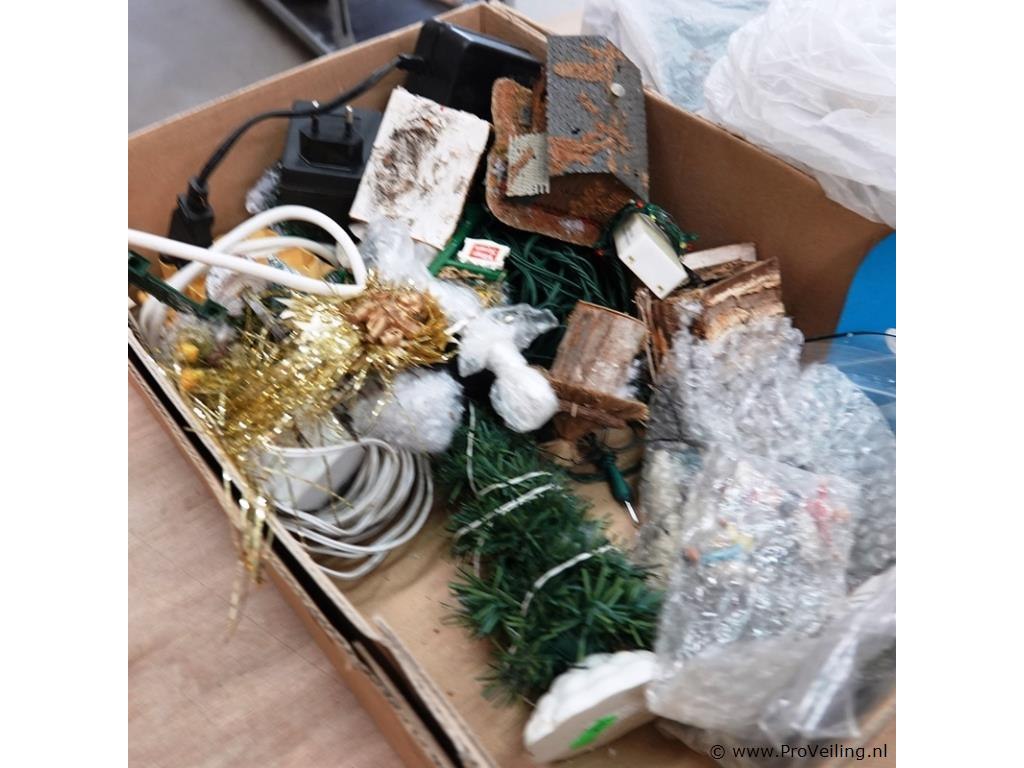 Partij kerstfiguren, boompjes, e.d. in doos