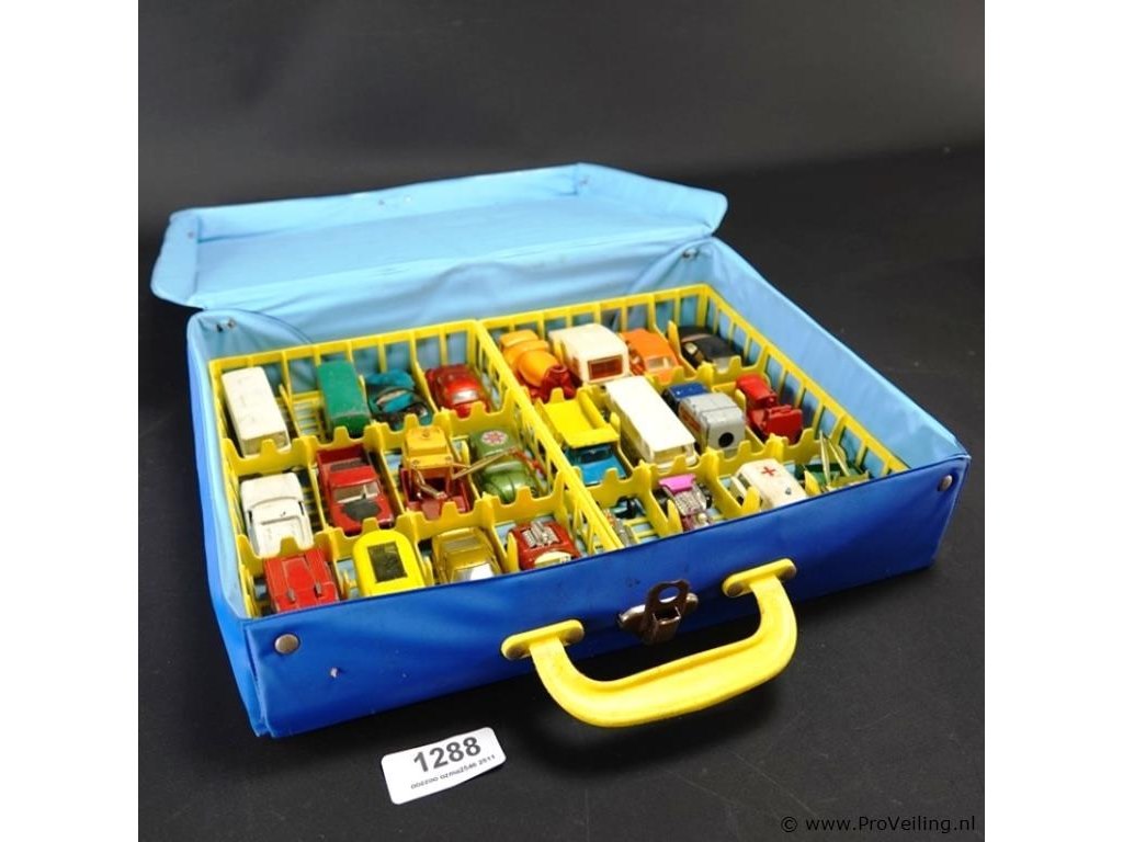 Koffer met vnl. lesney ney die-cast schaalmodellen