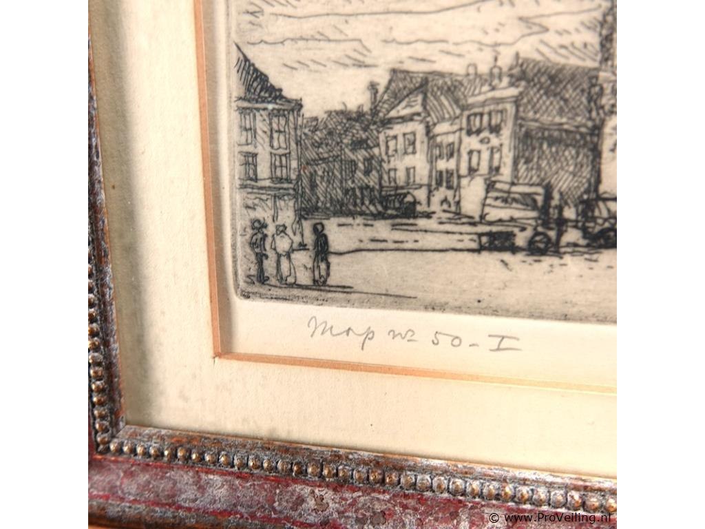 In passe-partout, achter glas en in houten lijst. H22cm/B28cm/426Gr. Dit betreft een tijdens transport kwetsbaar product! Uw transportrisico voor deze kavel is zeker in combinatie met andere kavels hoog. Lees daarom a.u.b. ook de extra veilinginformatie voor deze veiling!.