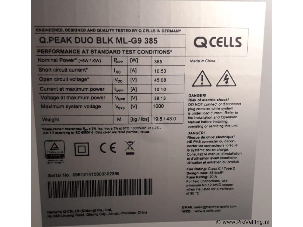 Zonnepanelen: merk Hanwha Q Cells; type Q.PEAK DUO BLK ML-G9 385; aantal 3 stuks.
