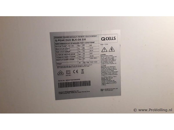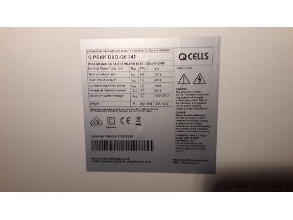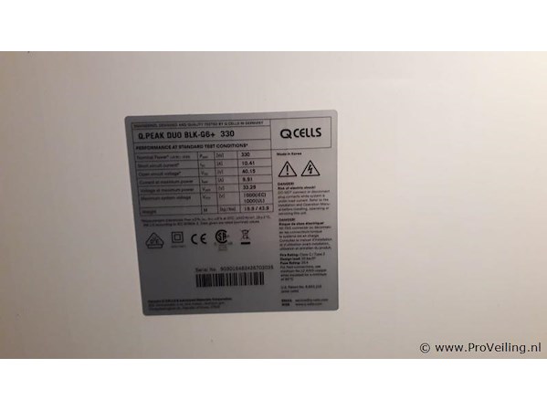 Partij zonnepanelen, diverse merken o.a. Hanwha Q Cells & Jinko Solar; aantal ca. 22 stuks.