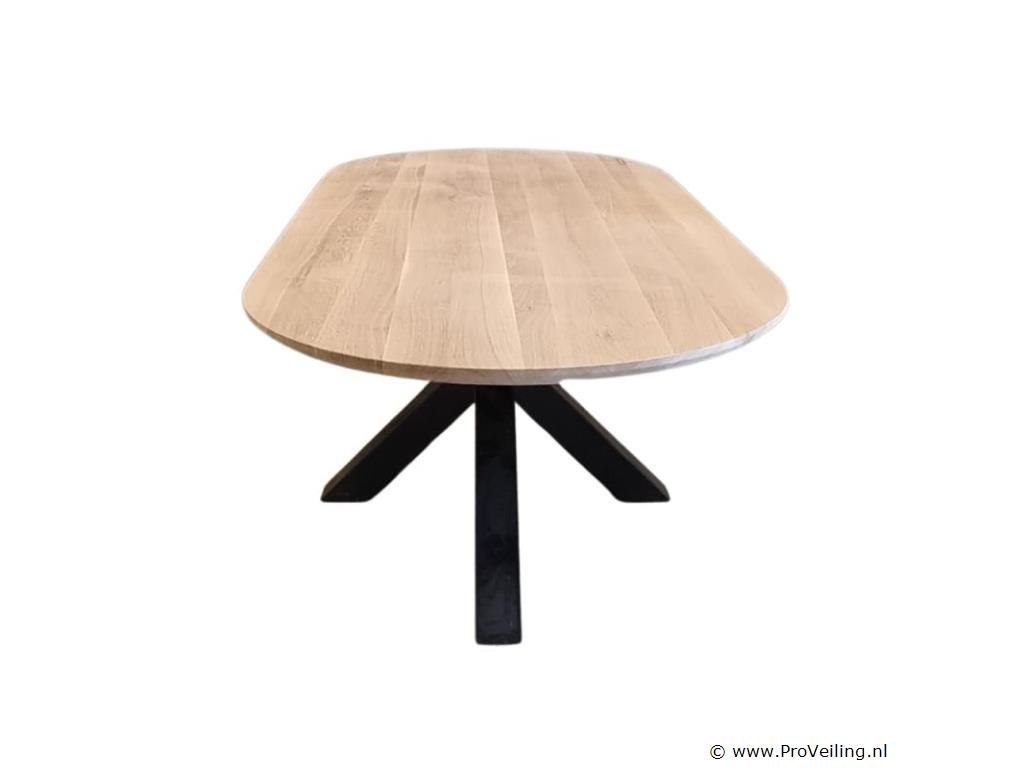 1x rond / ovaal tafel eiken - verjongde rand - 180x100 cm - massief eiken - spinpoot klein metaal 5x10