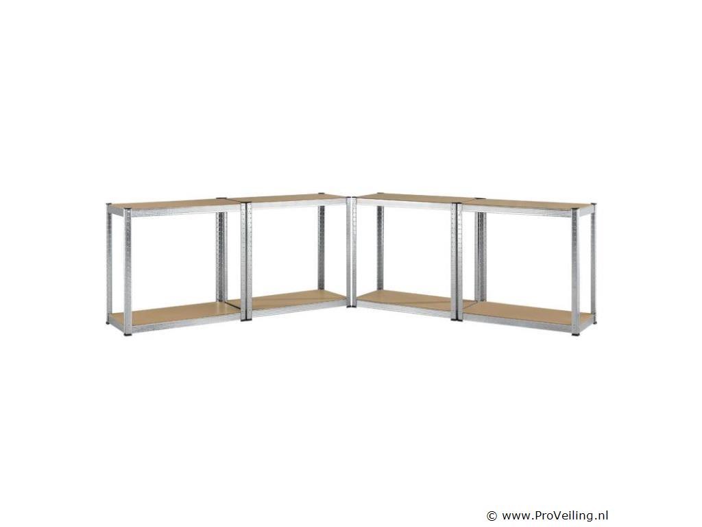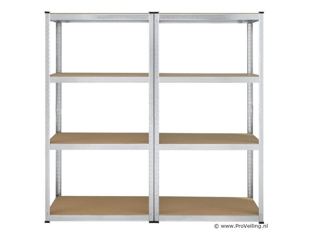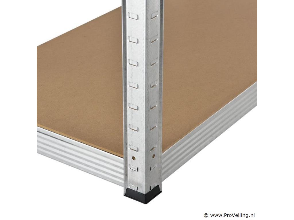 Of het nu in de kelder, garage, werkplaats of berging is - met de praktische 2-plankenset Easy brengt u orde in uw leven. De set bestaat uit twee stevige planken van 160 x 80 x 40 cm van gegalvaniseerd metaal. Beide kelderplanken zijn elk voorzien van 4 stabiele planken. Ideaal voor het opbergen van gereedschap, tuingereedschap, benodigdheden, drinken en andere spullen. Het ingenieuze insteeksysteem maakt een snelle montage zonder boren of schroeven mogelijk. De kunststof voetjes beschermen je vloer tegen lelijke krassen. Technische specificaties: Materiaal frame: metaal, verzinkt Materiaal planken: 100% hout (MDF) Materiaal voetjes: kunststof Kleur: zilver Legborden per heavy-duty legbord: 4 Maximaal draagvermogen per plank: 80 kg Totaal aantal verdiepingen: 8 Maximaal draagvermogen in totaal: 640 kg Aantal voeten: 16 Afmetingen (ongeveer): Hoogte: 160cm Breedte: 80cm Diepte: 40cm Leveringsomvang: 2 x zware planken 8 x planken 1 x Instructie Let op: Je ontvangt het product goed verpakt als bouwpakket voor zelfmontage per pakketdienst. Opmerking: Draag handschoenen bij het monteren van de planken om letsel te voorkomen.