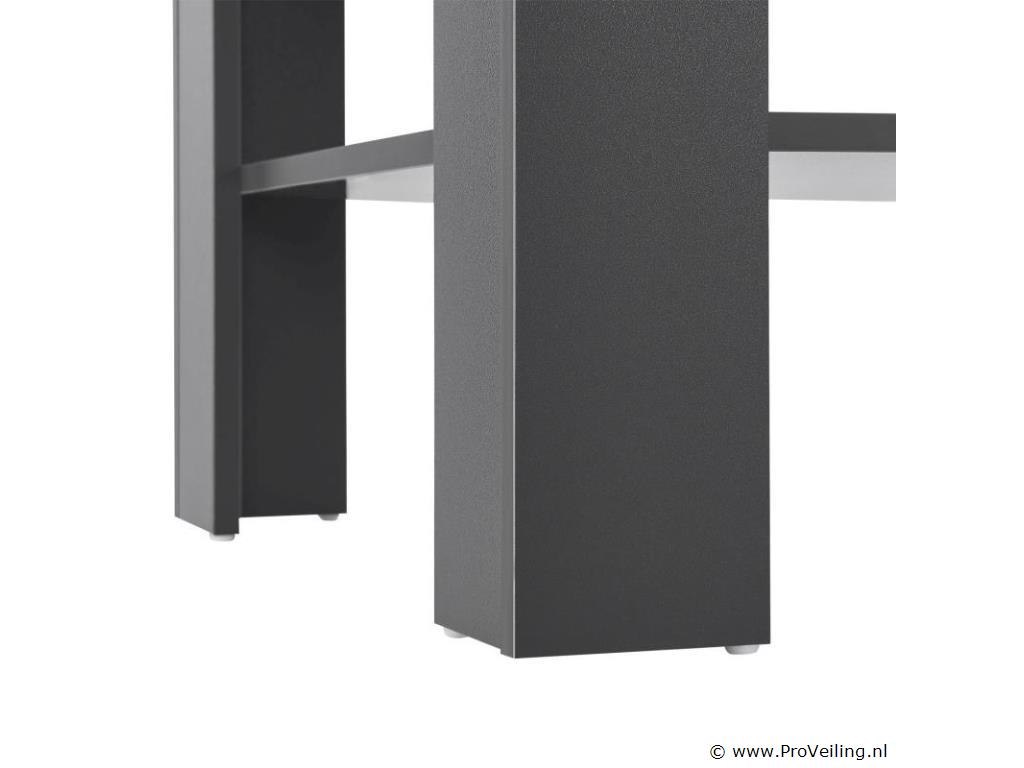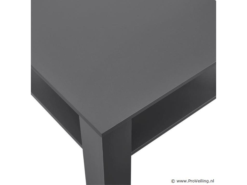 Met zijn compacte design en de eenvoudige, rechtlijnige look past de donkergrijze tafel perfect in bijna elke sfeer. De afmetingen van slechts 60 x 60 cm maken hem ideaal voor kleine ruimtes of als discrete bijzettafel. Op zijn 2 niveaus biedt hij verrassend veel ruimte voor drankjes, snacks, tijdschriften of afstandsbedieningen. De woonkamertafel is gemaakt van hout, wat hem niet alleen veerkrachtig en robuust maakt, maar ook licht van gewicht. Dankzij de melaminecoating zijn de oppervlakken ongevoelig voor krassen en zeer onderhoudsvriendelijk. Technische specificaties: Materiaal: spaanplaat E1 (melamine gecoat) Kleur: donkergrijs/houtlook Afwerking: Mat Maximale belasting: 50 kg Afmetingen (ongeveer): Totale afmetingen (LxBxH): 60x60x40 cm Afmeting vak: 57x57 cm Hoogte vak: 19 cm Materiaaldikte: 15 mm Bodemvrijheid: 20 cm Leveringsomvang: 1 × tafel 1 × montage-instructies