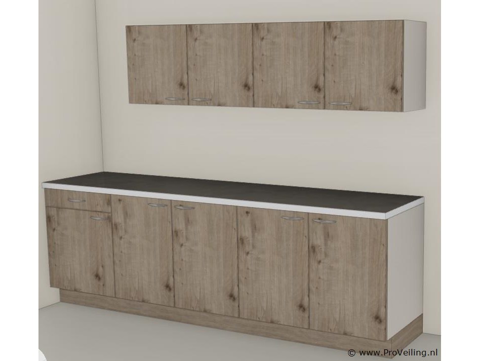 Keukenblokje kleur Hout bestaat uit onderkast 60 cm met 1 lade onderkast 100 cm onderkast 100 cm bovenkast 100 cm bovenkast 100 cm LET OP geen werkblad alles in bouwpakket verpakking 1 doos is 1 kast verpakking kan schade hebben; winkelprijs 695.00 euro.
