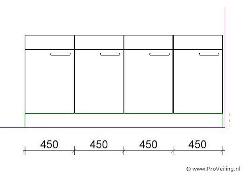 4 STUKS MAT wit onderkasten 50 cm breed per stuk Nieuw in de verpakking geen bouwpakket kasten maar compleet verlijmd met grepen en poten Let op Geen werkblad en plint; winkelprijs 795,00 euro.