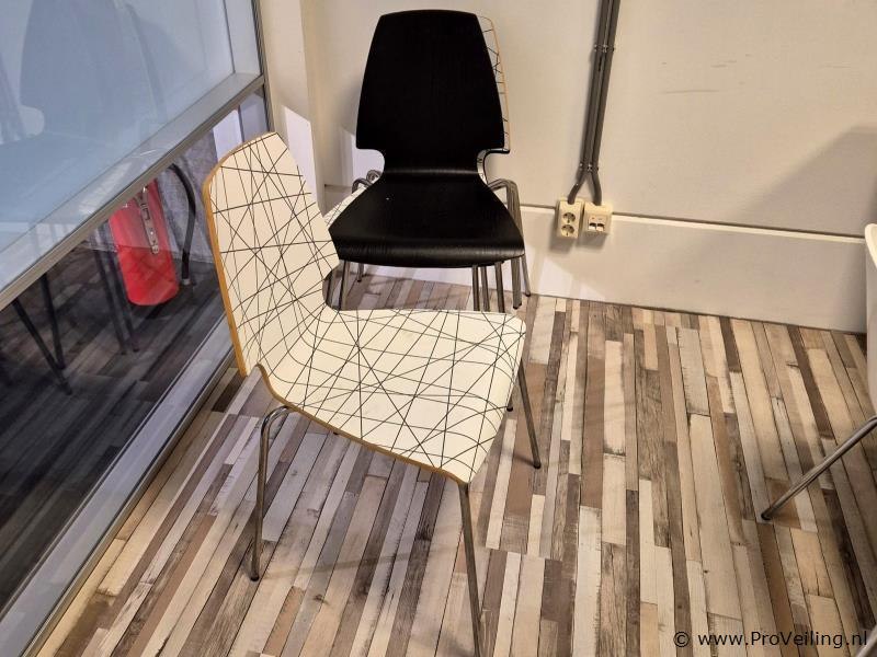 Type: Set van 8 designstoelen Model: Lux Conditie: Gebruikt Productbeschrijving: Set van 4 witte en 4 zwarte designstoelen - Model: Moderne kuip-/schelpstoel met sierlijke kromming - met lijnpatroon (wit) - Frame: Slanke metalen poten - Comfort: Licht verend zitcomfort - Geschikt voor: Vergaderruimte, kantoor, wachtruimte - Conditie: Gebruikt, in nette staat met normale lichte gebruikssporen