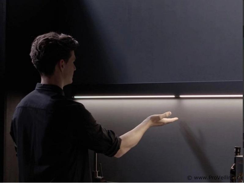 Merk: Novy Productnaam: wandverlichting 275cm Model: Wall240 Conditie: Nieuw Ter waarde van: € 1049 Productbeschrijving: Minimalistische wandverlichting 275cm met boven en onderverlichting, ontworpen en gemaakt door 2 dutch designers, Jansen en de Bont De Wall wordt geleverd met de standaard Gesture Control bediening en is dus zonder knop, app of afstandsbediening aan uit te swipen, te wisselen van werk naar sfeerverlichting of in te stellen in kleur Perfect wanneer u druk in de keuken aan het koken bent, maar ook wanneer u gezellig aan tafel zit te borrelen. Voor iedere setting is de perfecte sfeer te creëren. Lichtkleur van 2700K-4000K Lengte 275cm Hoogte 8cm Diepte 4cm