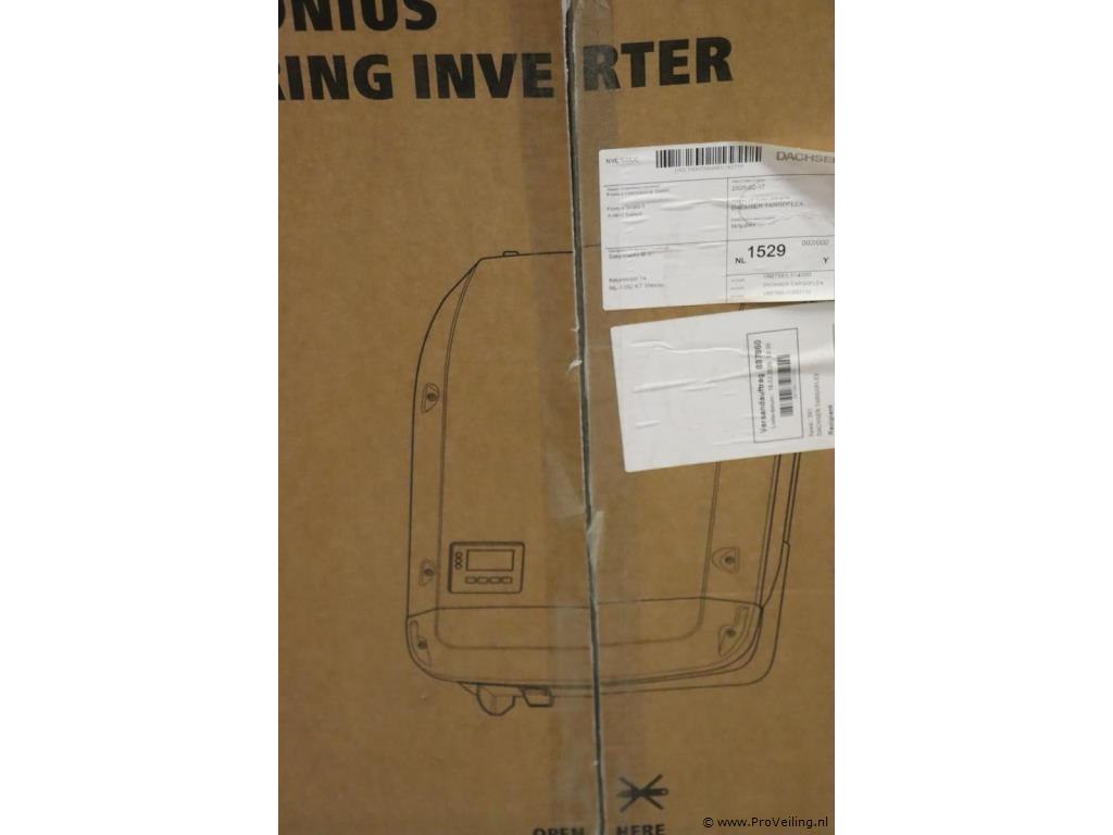 Inverter/omvormer: merk Fronius; model Fronius Symo 8.2-3-M; Wlan/Lan/Webserver; part. No.: 4,210,039; nieuw in doos; winkelverkoopprijs ca. € 2103,-. Met een vermogensbereik van 3,0 tot 20 KW vervolledigt de Symo omvormerfamilie van Fronius de reeks omvormers die zijn uitgerust met SnapInverter-technologie. Dit type eenfasige transformatorloze apparatuur is vooral gericht op het particuliere woningsegment. De SnapInverter-technologie maakt installatie en onderhoud van deze apparatuur eenvoudiger dan ooit. De standaard communicatiefuncties, waaronder WLAN, energiebeheerfuncties, talrijke interfaces en nog veel meer, maken van de Fronius Primo netomvormer een zeer gebruiksvriendelijk apparaat. Snap omvormer - is een gestandaardiseerd klemsysteem, waardoor installatie en onderhoud eenvoudiger zijn dan ooit. Een speciaal kenmerk van deze apparatuur is dat het aansluitgedeelte gescheiden is van het vermogensgedeelte van de omvormer, omdat dit twee aparte, afzonderlijk geïnstalleerde modules zijn. De omvormer (de powermodule) wordt eenvoudigweg vastgezet in de beugel die op de steun is geklemd. Onderhoud is dus een eenvoudig proces, want het is niet nodig om de hele omvormer te demonteren, het aansluitgedeelte blijft vastzitten. Datacommunicatie geïntegreerd Fronius - is de eerste fabrikant die zijn omvormers uitrust met een datacommunicatiepakket, bestaande uit geïntegreerde datalogging, WLAN, Ethernet, energiebeheer, webserver en een reeks interfaces voor gebruikersinteractie. De omvormer kan op het internet worden aangesloten via een netwerkkabel of WLAN. Superflex ontwerp - is een ingenieuze combinatie van technische kenmerken - twee MPP trackers, hoge bedrijfsspanning, breed ingangsspanningsbereik. Deze technische eigenschappen maken het mogelijk om uitstekende prestaties te leveren gedurende een zonnige dag, maar ook in configuraties met verschillende dakoriëntaties. Dynamisch puntbeheer - is een algoritme voor de MPP-tracker die automatisch het optimale werkpunt identificeert. Het belangrijkste kenmerk is dat het globale maximale vermogenspunt identificeert, zelfs bij minder zonnig weer, voor een hogere efficiëntie van het hele PV-systeem. Opties voor Smart Grid - Alle Fronius omvormers zijn uitgerust om te voldoen aan de eisen van de elektriciteitsnetten van de toekomst. Een aantal SMART-functies, waaronder een aantal om de injectie van reactief en effectief vermogen in het net te regelen en te bewaken, zijn al in de omvormer ingebouwd. Deze SMART-functies zijn bedoeld om het net tijdens bedrijf te stabiliseren en ongewenste onderbrekingen in de injectiefase te voorkomen. Waar injectielimieten bestaan, kunnen Fronius omvormers bovendien interactieve injectieregeling bieden die rekening houdt met het eigen verbruik. Al deze Smart Grid Ready opties bieden de zekerheid van een langetermijninvestering. Nul netwerkinjectie - Een groot aantal energiebeheerders in verschillende landen stelt de installatie van een fotovoltaïsch systeem afhankelijk van het bestaan van een energiedrempel die in het nationale energiesysteem wordt geïnjecteerd. De omvormer geeft voorrang aan de levering aan huishoudelijke verbruikers en vermindert de hoeveelheid geïnjecteerde energie tot de limiet die door de energiebeheerder is opgelegd. Deze drempel kan worden geconfigureerd via de webinterface van de omvormer.