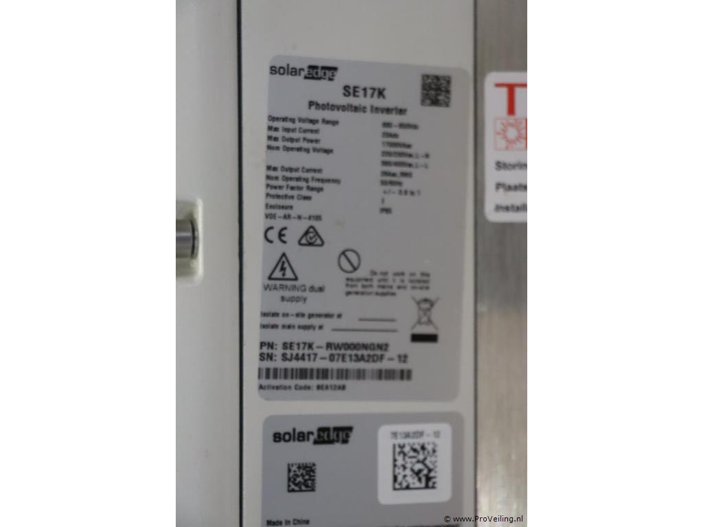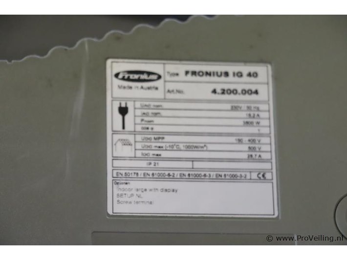 Partij diverse inverters/omvormers: merken Fronius & SolarEdge; diverse modellen o.a. IG 40, SE17K & SE2200; zie afbeeldingen.