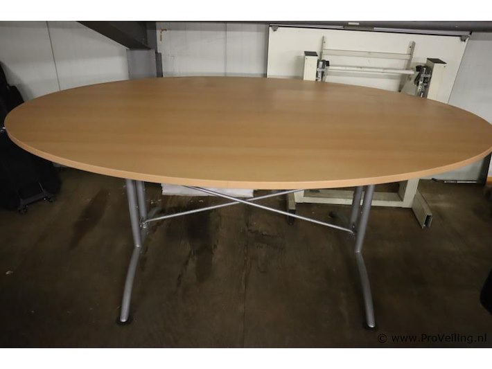 Vergadertafel; ovaal model; afmetingen ca. 215x120x82cm; zie afbeeldingen.