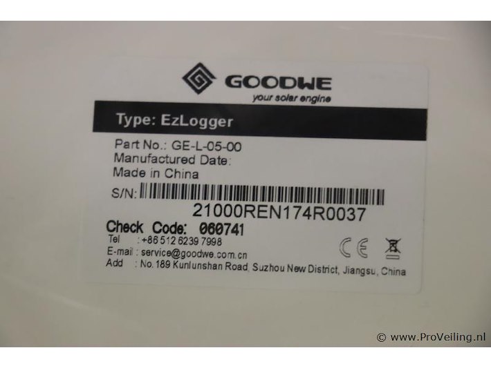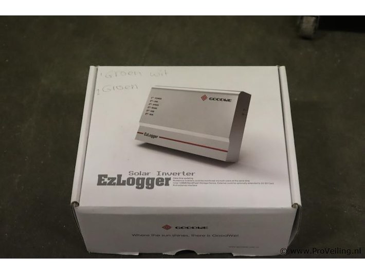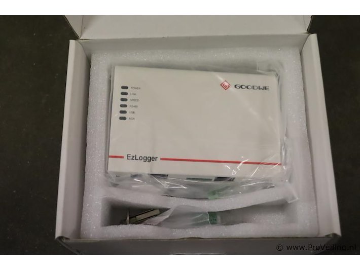 EzLogger Pro: merk Goodwe; type EZLogger Pro LAN; nieuw in doos; winkelverkoopprijs ca. € 175,-. Wordt met de omvormer verbonden via RS485, maakt verbinding met de pc via ethernet en verzendt gegevens naar de EzExplorer-bewakingssoftware van GoodWe en de GoodWe-portal.