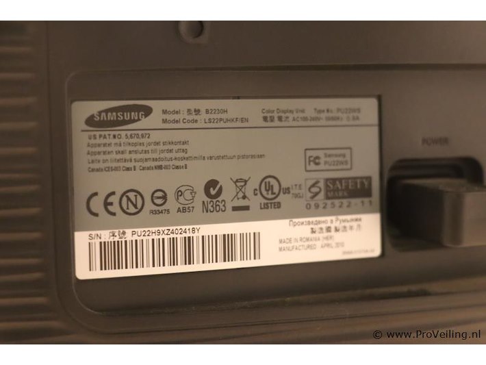 Monitor incl. monitorarm: merk Samsung; model B2230H; zie afbeeldingen.