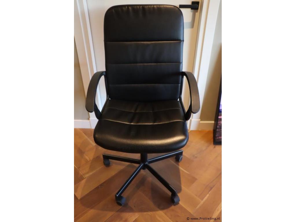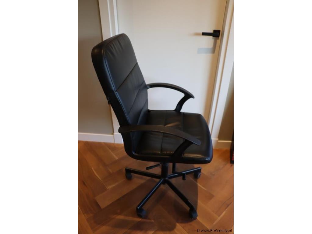 Bureaustoel; kleur zwart (skai) leder; in hoogte verstelbaar; afmetingen ca. 44x50x116cm; zithoogte ca. 54cm; zie afbeeldingen.