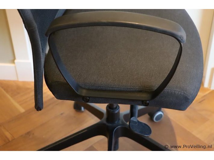 Bureaustoel; kleur zwart gestoffeerd; afmetingen ca. 40x53x138cm; zithoogte ca. 56cm; zie afbeeldingen.
