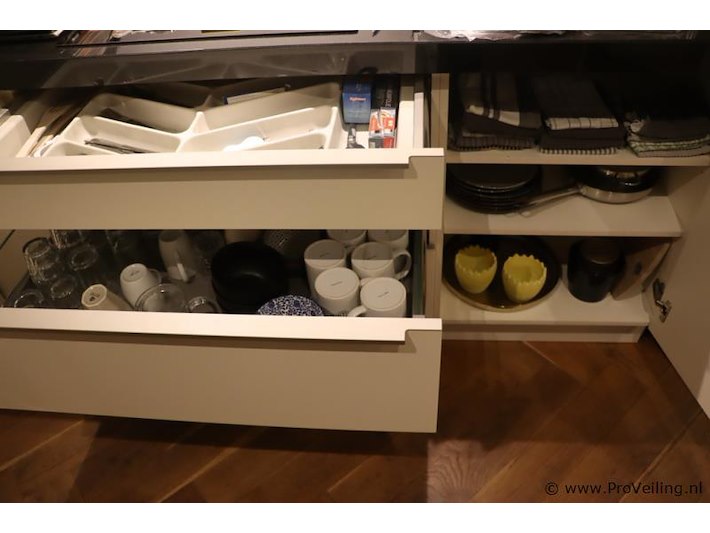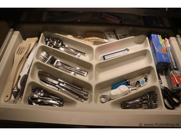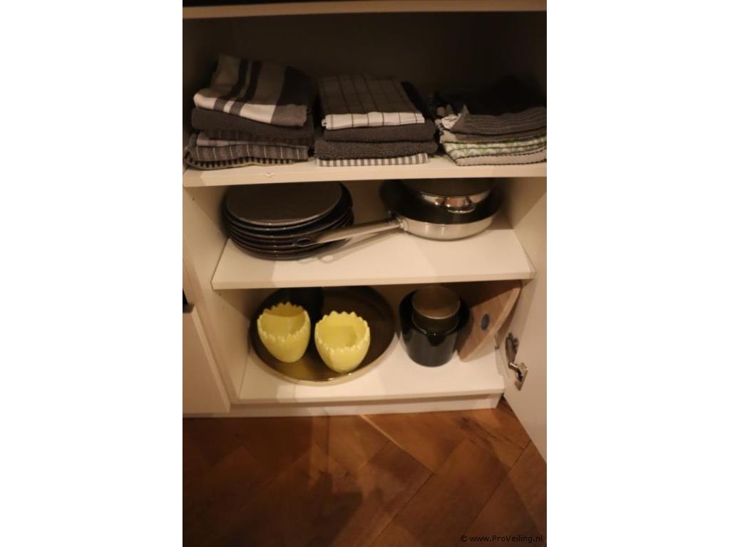 Inhoud kasten bestaande uit o.a. kopjes, glazen, theedoeken & bestek; zie afbeeldingen.