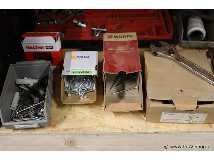 Partij diversen o.a. handgereedschap & bevestigingsmaterialen; zie afbeeldingen.