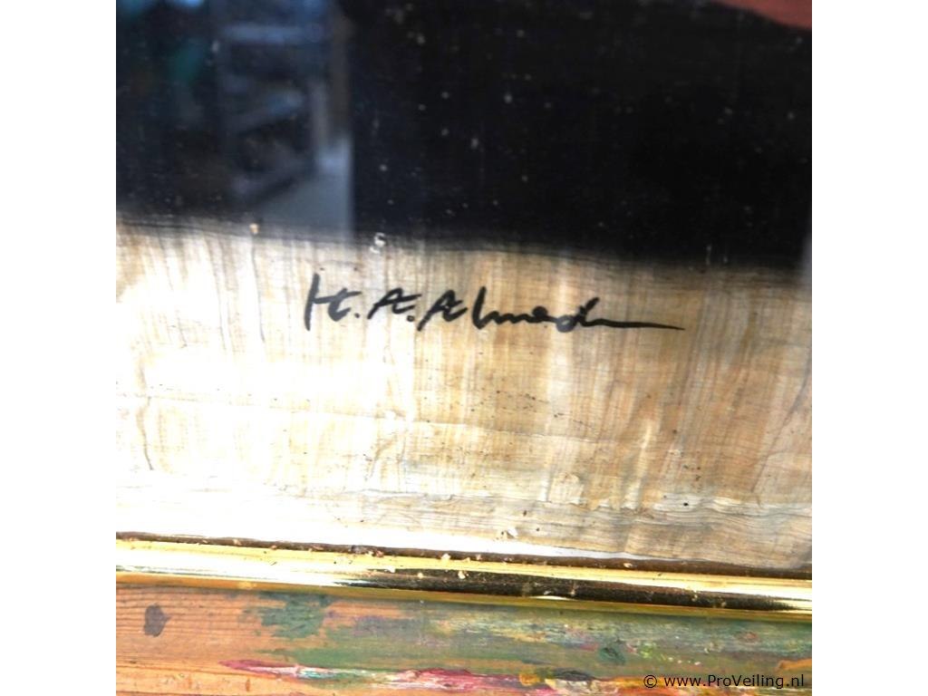 In grote wissellijst. H95cm/B64cm/. Lees a.u.b. ook de extra veilinginformatie voor deze veiling. G-E-E-N transport of bezorging door Proveiling mogelijk. Eventueel transport of bezorging alleen door u zelf te regelen via b.v. www.brenger.nl .