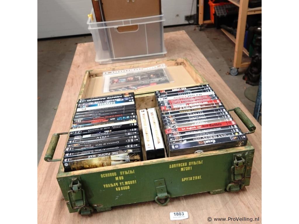 Militaire munitiekist uit het voormalige joegoslavië. gevuld met grote partij dvd's