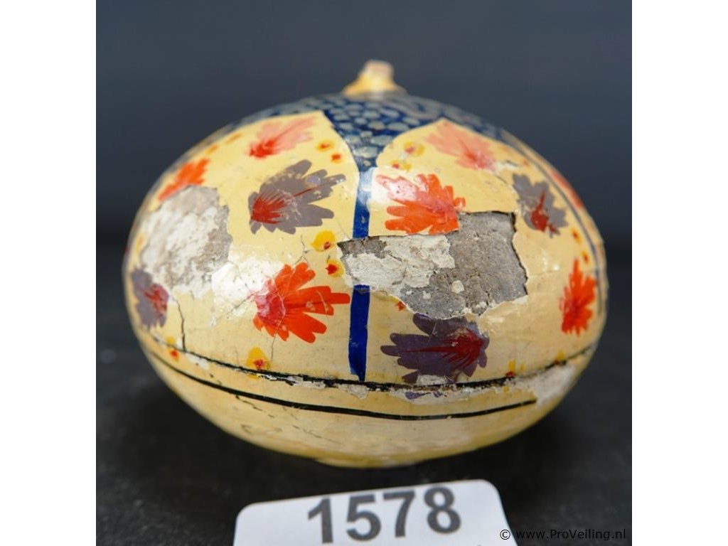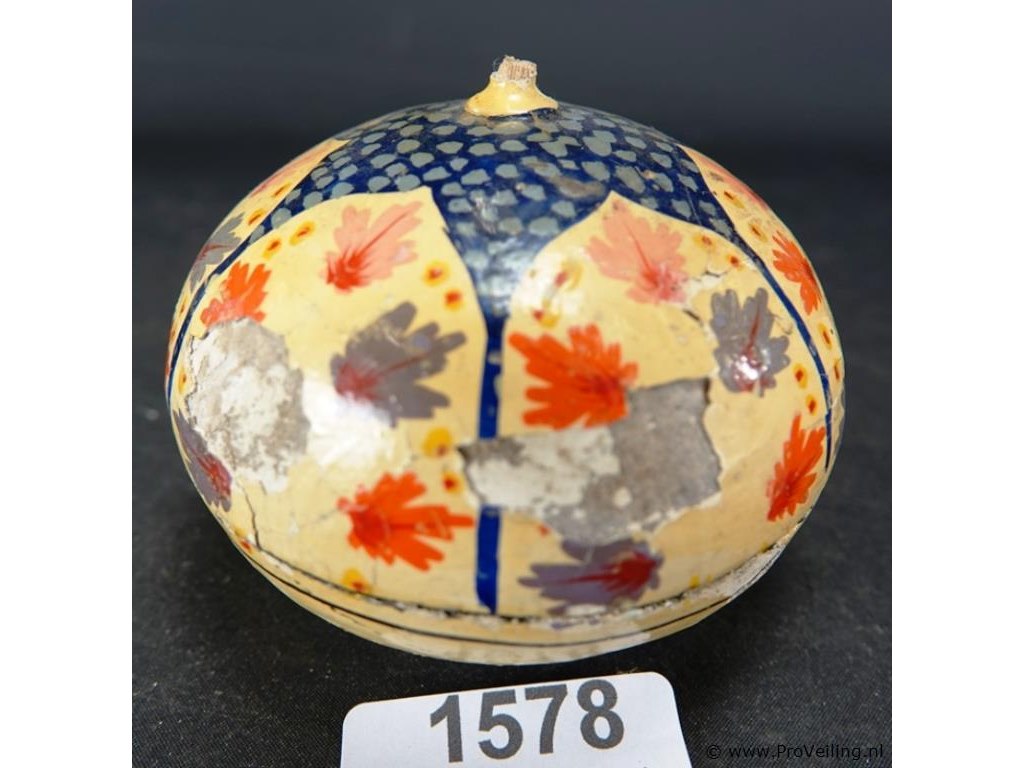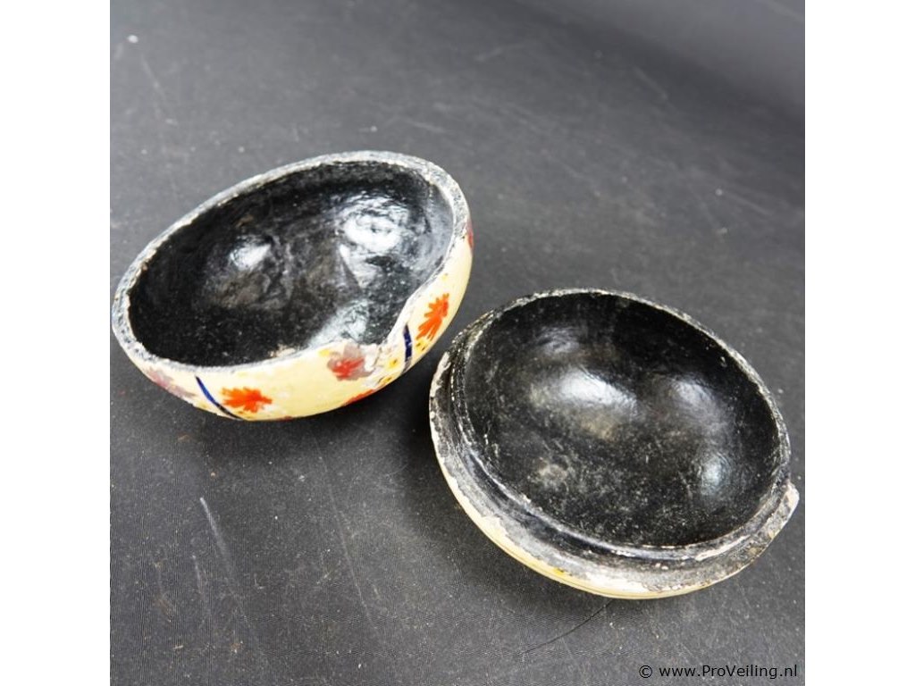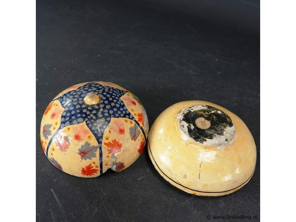 Laqué dekseldoos. H10cm/D12cm/110Gr. Dit betreft een tijdens transport kwetsbaar product! Uw transportrisico voor deze kavel is zeker in combinatie met andere kavels hoog. Lees daarom a.u.b. ook de extra veilinginformatie voor deze veiling!.