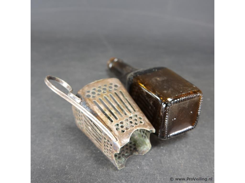 Oude maggifles in verzilverde houder