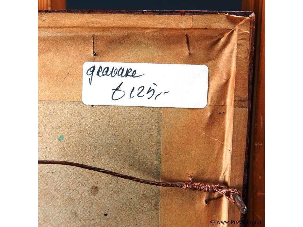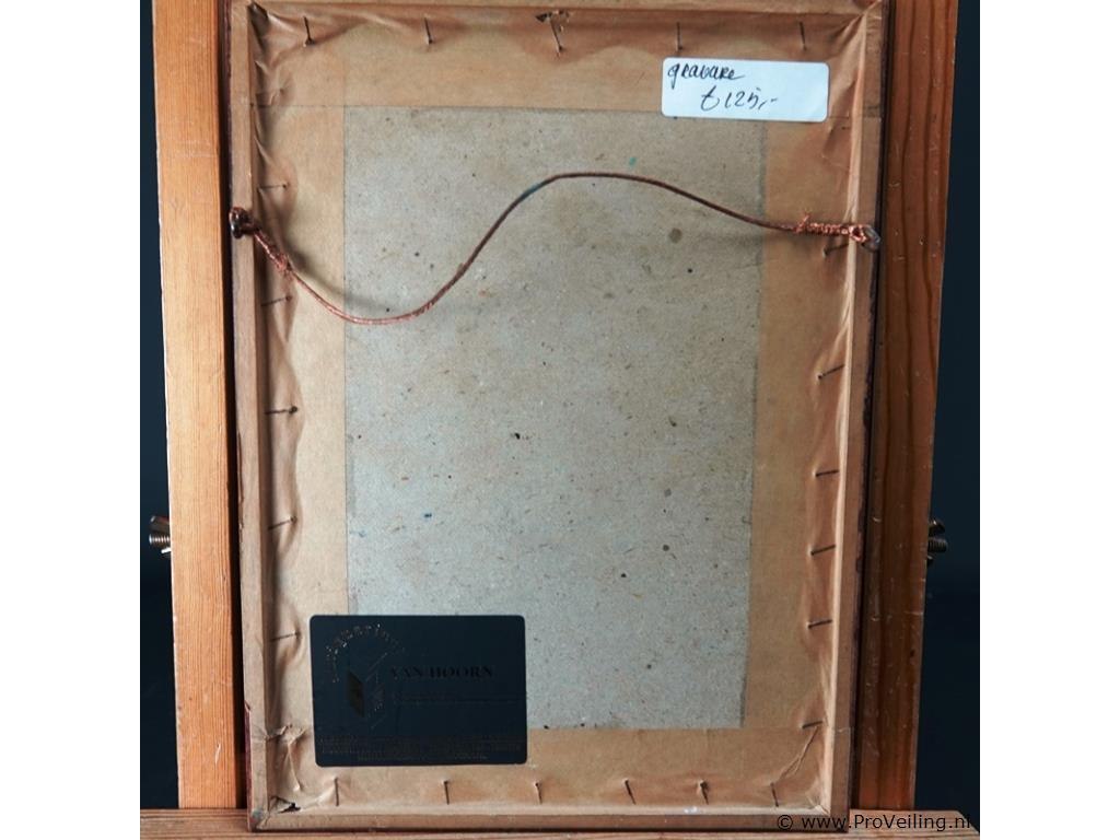 In passe-partout, achter glas en in houten lijst. H26cm/B20cm/396Gr. Dit betreft een tijdens transport kwetsbaar product! Uw transportrisico voor deze kavel is zeker in combinatie met andere kavels hoog. Lees daarom a.u.b. ook de extra veilinginformatie voor deze veiling!.