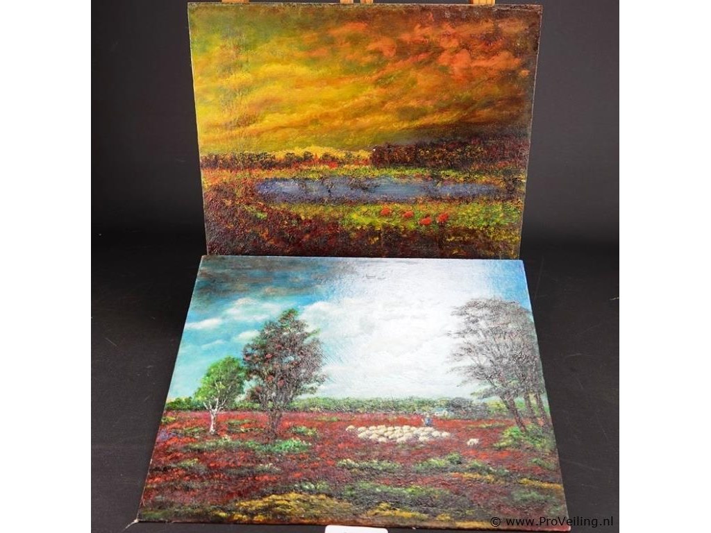 Paar olieverfschilderijen op board