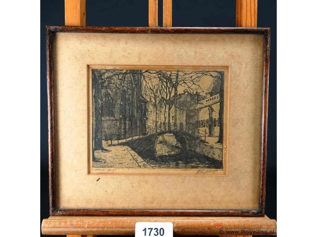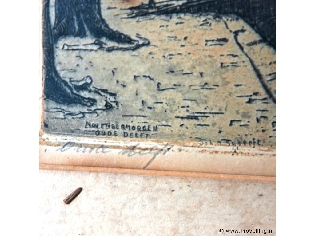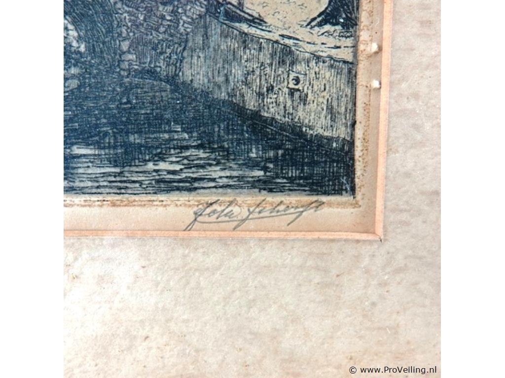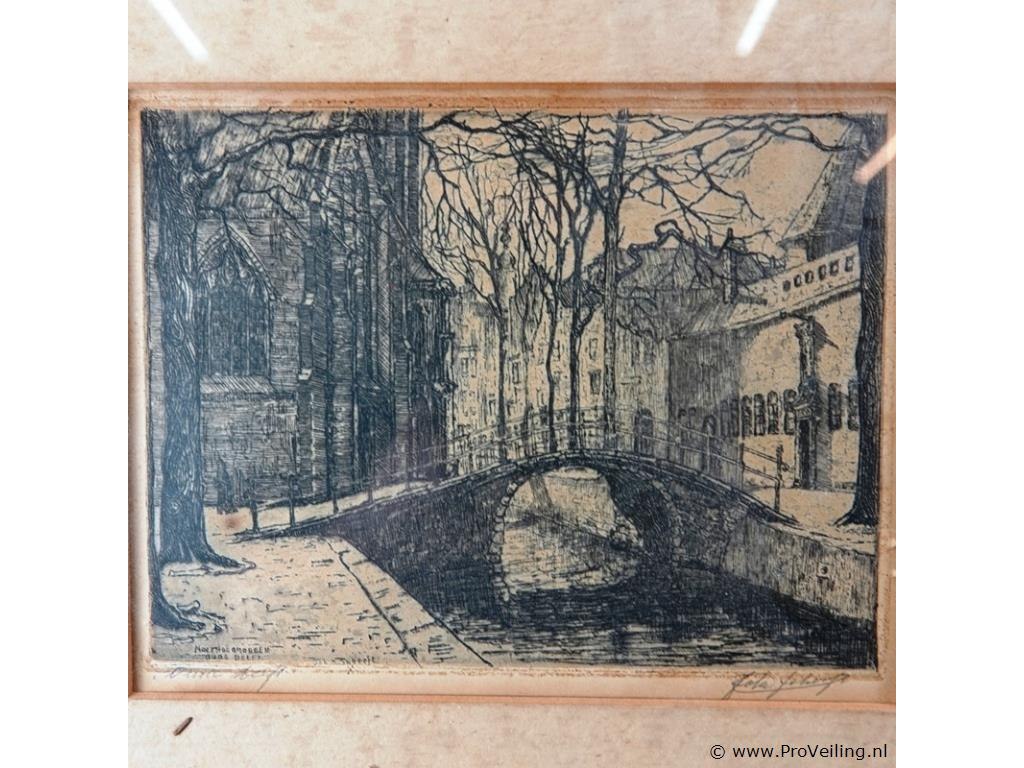 In passe-partout, achter glas en in houten lijst. H25cm/B28cm/484Gr. Dit betreft een tijdens transport kwetsbaar product! Uw transportrisico voor deze kavel is zeker in combinatie met andere kavels hoog. Lees daarom a.u.b. ook de extra veilinginformatie voor deze veiling!.