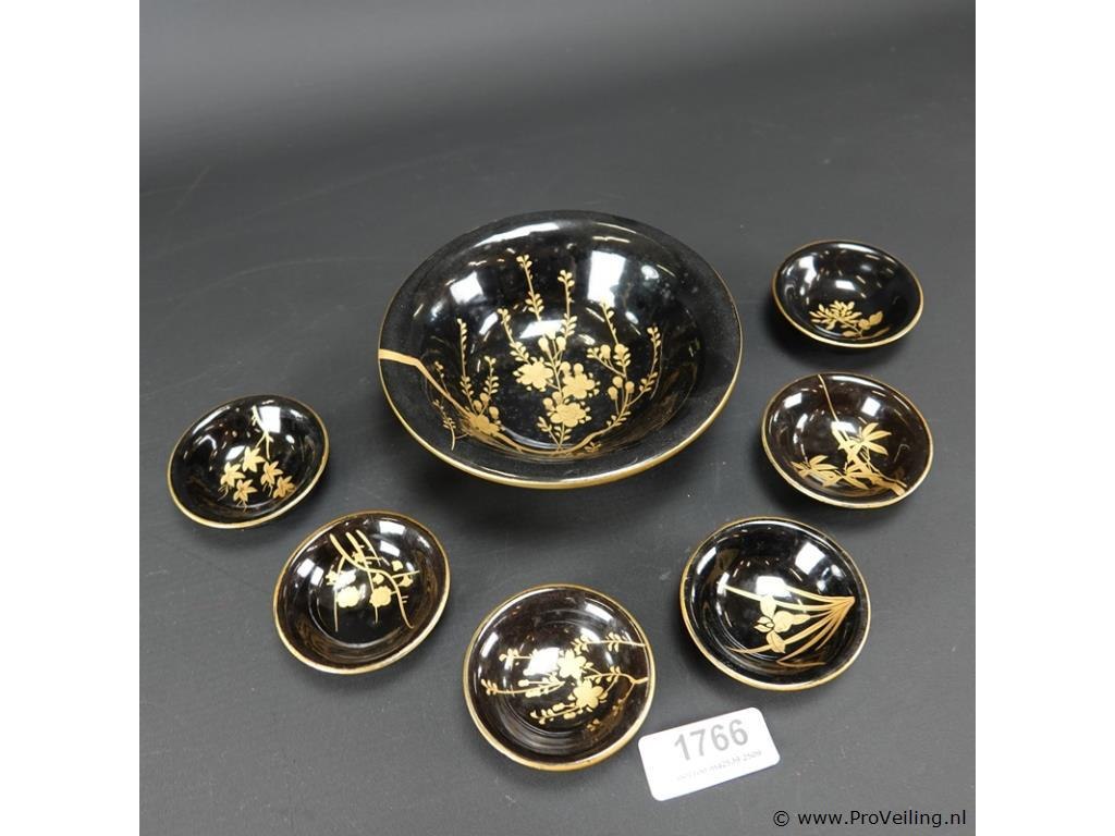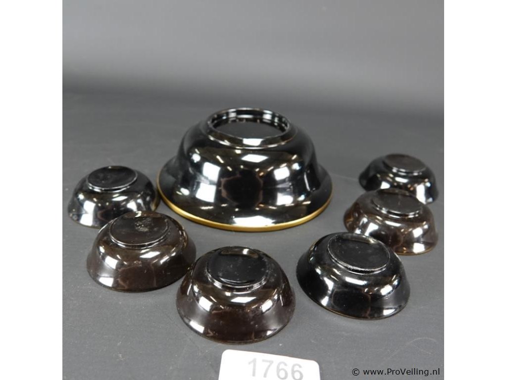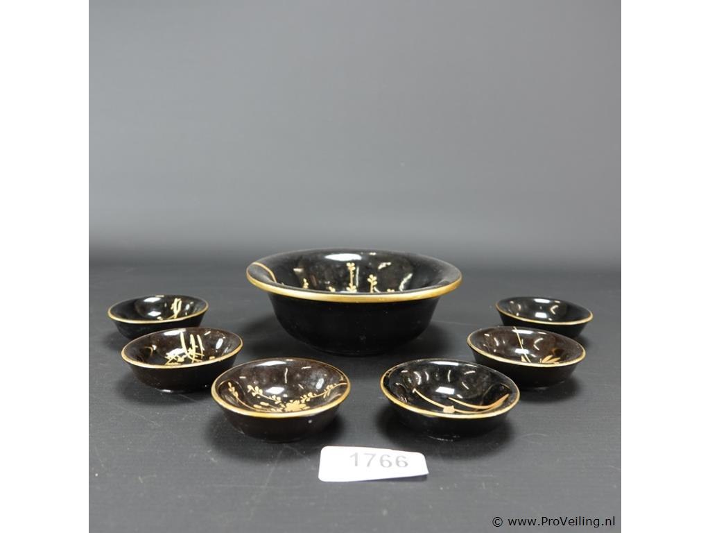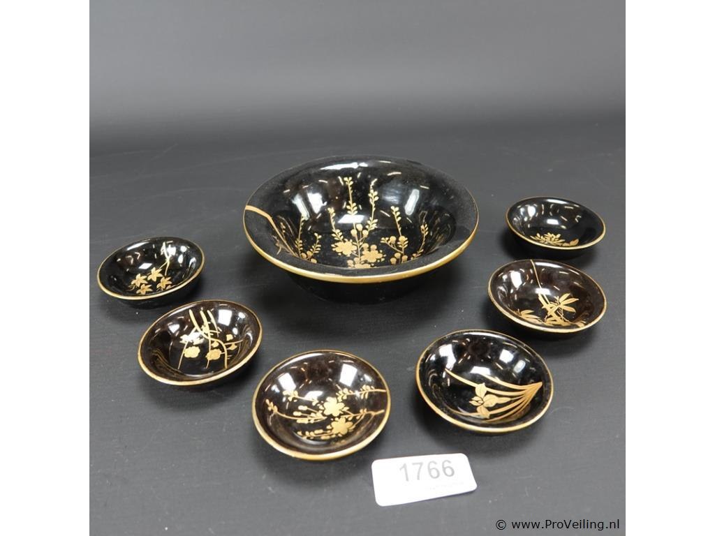 Laqué pindaset. H6cm/D16cm/218Gr. Dit betreft een tijdens transport kwetsbaar product! Uw transportrisico voor deze kavel is zeker in combinatie met andere kavels hoog. Lees daarom a.u.b. ook de extra veilinginformatie voor deze veiling!.