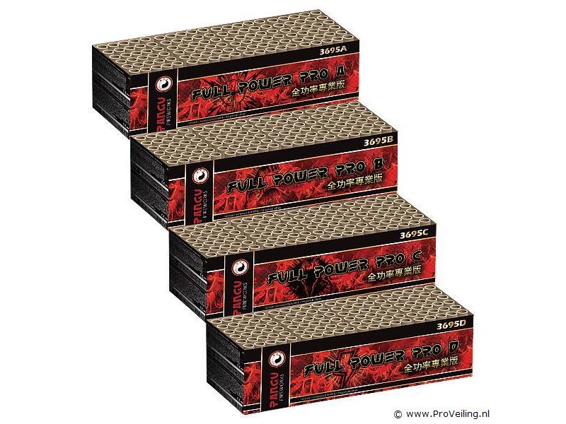 Soms wil je gewoon vol gas gaan.. Gewoon als een echte pro het nieuwe jaar inluiden. Daar heeft Pangu nu een oplossing voor, de Full Power Pro! Met deze compoundset welke is opgebouwd uit vier compounds met ieder 120 schoten siervuurwerk zet jij de buurt op stelten. Je ramt in totaal 480 schoten met het allermooiste siervuurwerk uit verschillende toppers van Pangu producten de hemel in. En dat in een heerlijk tempo boordevol salvos welke elkaar sneller en sneller opvolgen. Niet normaal, wat een blok is dit!
