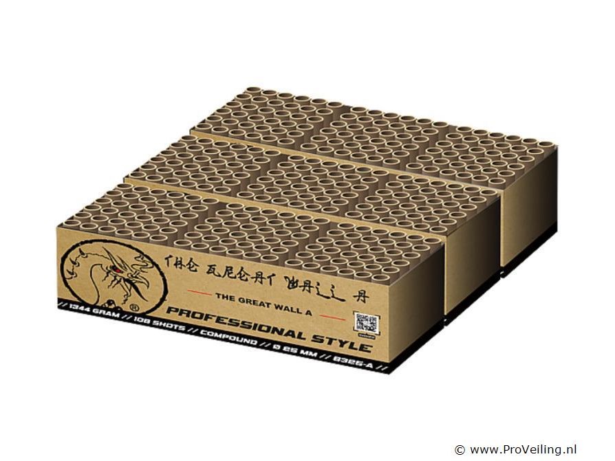 3x108 shots 25mm compoundset 324 shots 25mm compoundset van Professional Style. The Great Wall is de internationale naam van de Chinese muur. En die is groot, net zoals deze super compoundset. Met drie compounds van ieder 108 schoten zet u een waar spektakel neer.