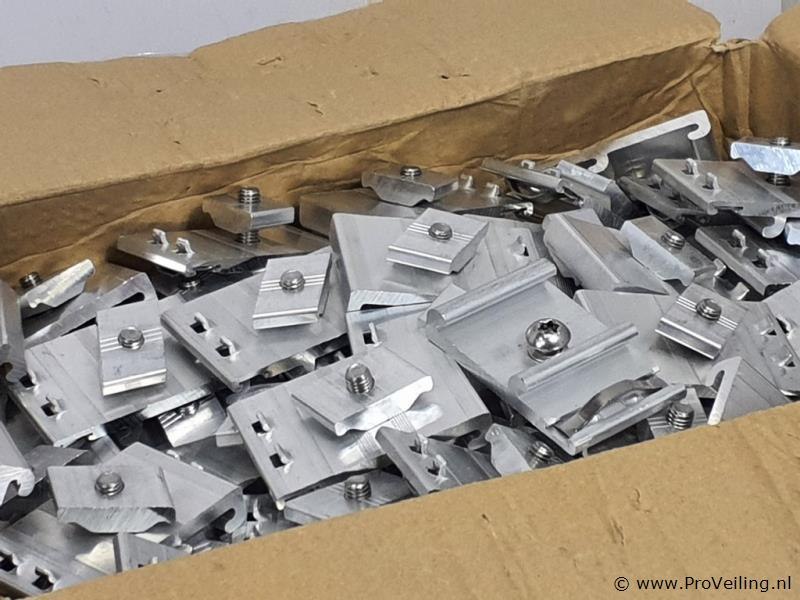 Inbouwbeugels t.b.v. zonnepanelen; inhoud ca. 200 stuks; nieuw in doos.