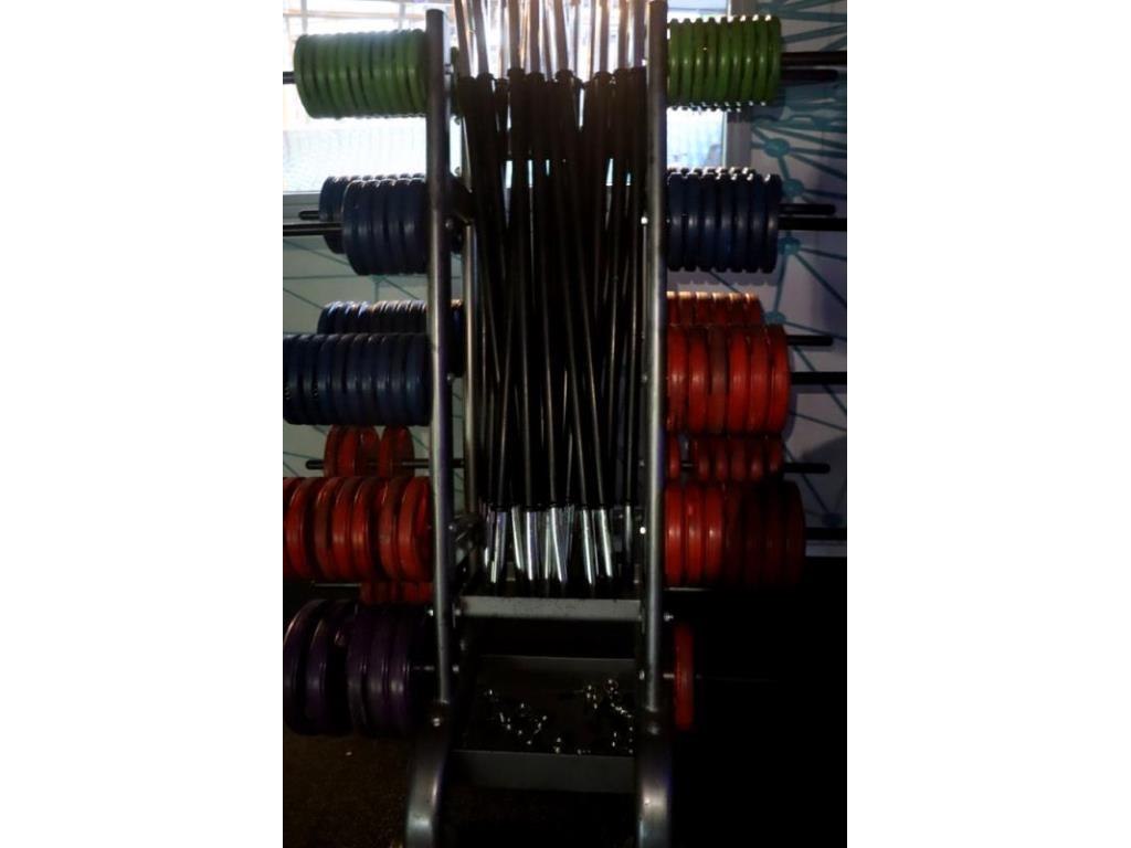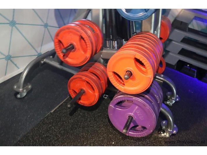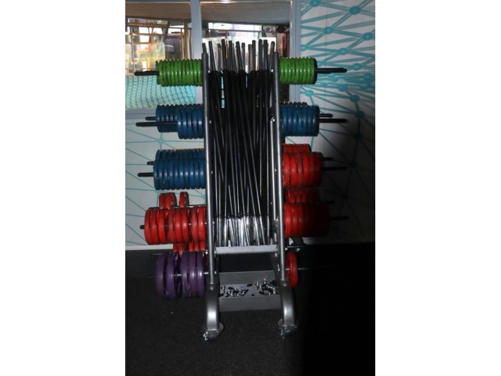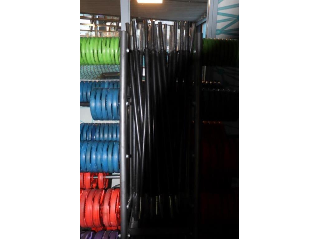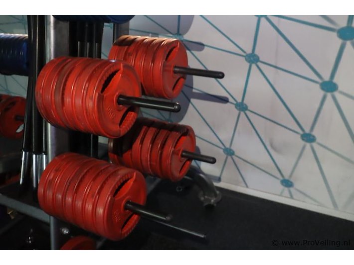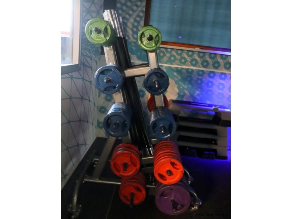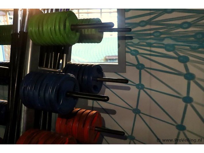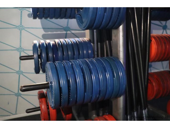 Halterschijven- en halterstangenrek; afmetingen ca. 130x120x160cm; zie afbeeldingen.
