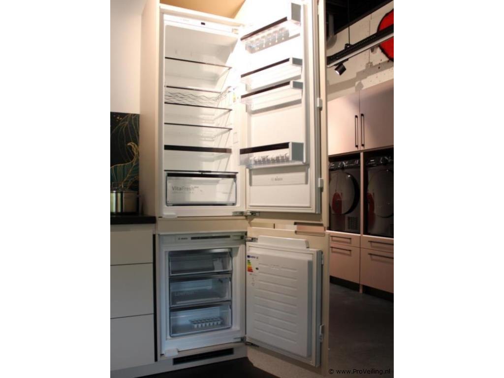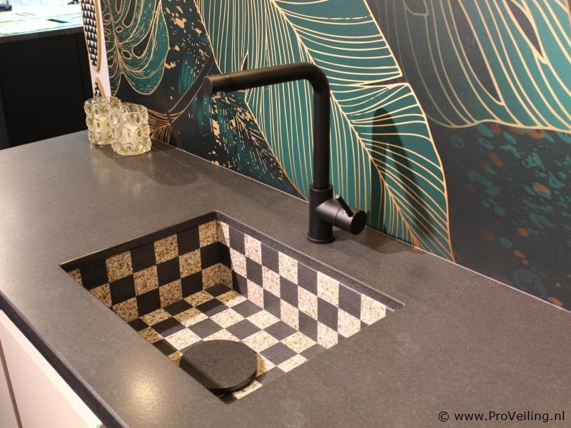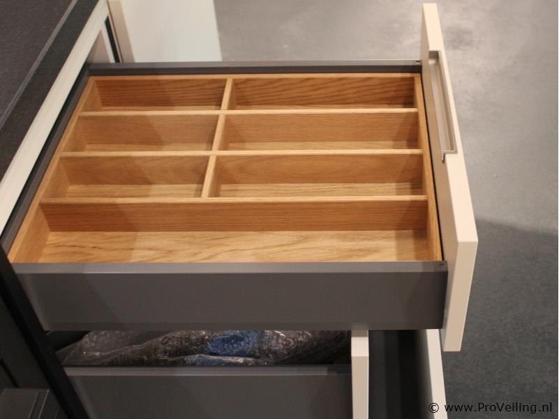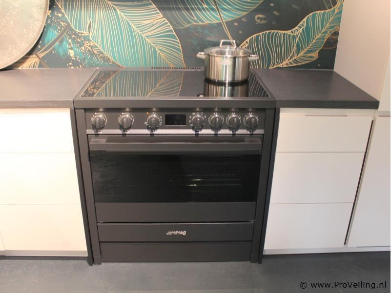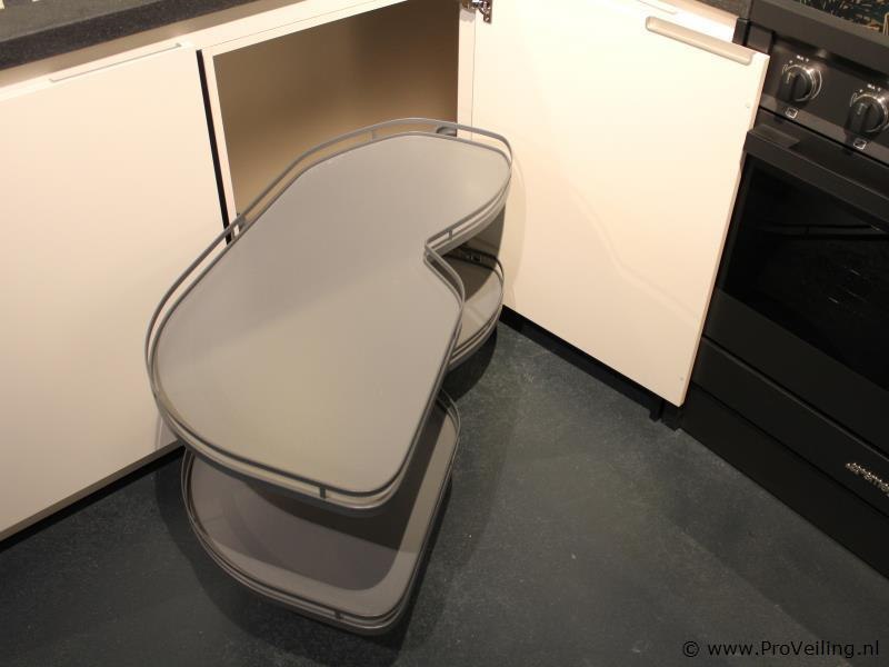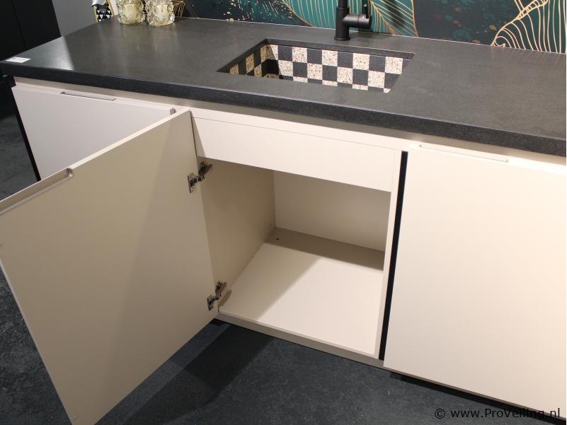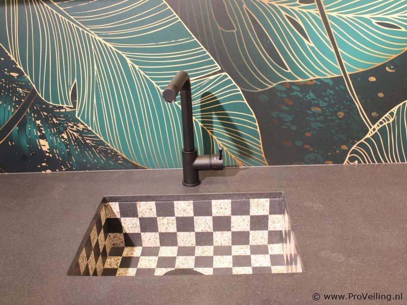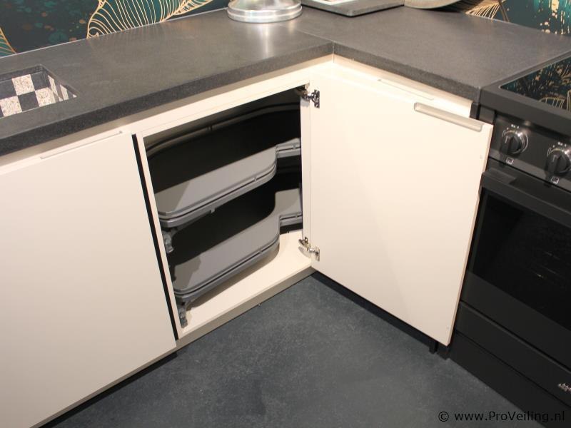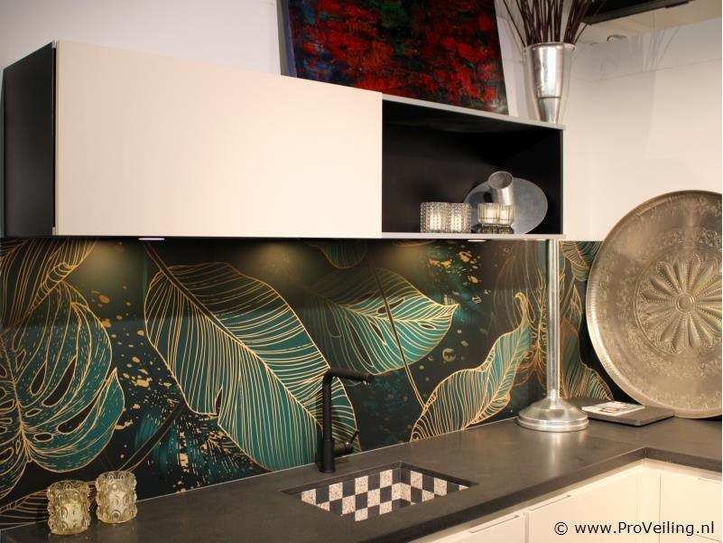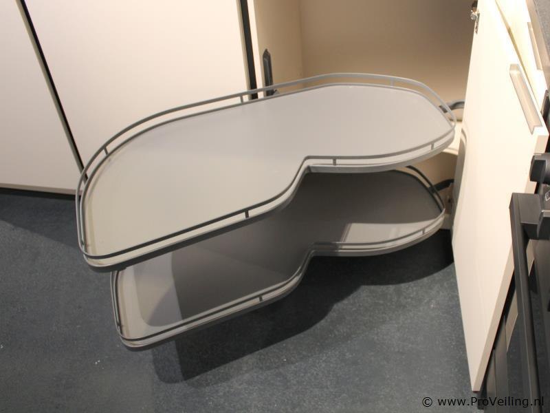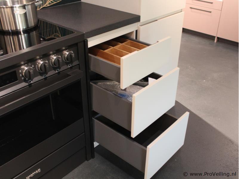 Merk: Beckermann Type: Hoekkeuken Model: Peru Frontkleur: Sandbeige Plintkleur: Sandbeige Grepen: Greeploos Afmetingen ca.: 251 x 310 cm - hoog 236 cm - Werkbladhoogte 95 cm Vaatwasser: Siemens SD6PW1S - Volledig geïntegreerde inbouwvaatwasser - Geschikt voor circa 12 tot 16 couverts - Energieklasse E - Meerdere wasprogramma’s met temperatuurkeuze - Startuitsteloptie en aquastopbeveiliging - Stil en energiezuinig in gebruik Fornuis: Smeg B95IMAN9 - Vrijstaand fornuis inductie/elektro 'Professionale' met 5 inductie kookzones - kleur antraciet - booster functie - Multizone - automatische aanpassing panafmeting - 1 oven met 9 kookfuncties - inhoud 115 liter - grill - timer - Touch displa - ECOlogic - vapor Clean - opbergruimte met klep enSoftclose deur - het powermanagement systeem maakt het mogelijk om het fornuis aan te sluiten op 2- of 3-fasen. Afzuigkap: Smeg wandafzuigkap 90 cm breed - Zwarte uitvoering in Victoria-stijl - Decoratief piramide-model - Montage tegen de wand - Luchtafvoer of recirculatie mogelijk - Capaciteit tot ca. 595 m³/uur - 3 snelheden - Geluidsniveau ca. 66 dB(A) - LED-verlichting Koelkast: Bosch KIR41SDF0 - Integreerbare koelkast Serie 6 met superkoelen - inhoud 211 liter - touchControl - 6 Veiligheidsglas plateaus - SoftClose deur sluiting en LED-verlichting met SoftStart. Vriezer: Bosch VIV11A - Inbouw-vriezer - Netto inhoud 72 liter - Energieklasse E - Geluidsniveau ca. 36 dB(A) - LowFrost-technologie (minder vaak ontdooien) - Supervriezen functie voor snel invriezen - Deur-op-deur montage systeem - Draairichting deur verwisselbaar - 3 transparante vrieslades - Nishoogte circa 72 cm - Netto inhoud vriesgedeelte 72 liter - Invriesvermogen ca. 8 kg/24u - Bewaartijd bij stroomuitval circa 21 uur Werkblad: Composiet - kleur gemêleerd donker grijs/grafiet - 3 cm hoge werkbladrand - facet geslepen Spoelbak: Onderbouw tegeltjesbak gemêleerd (rechthoekig) Kraan: Eén-hendel keukemengkraan - hoog hoekmodel, past emmer onder - kleur zwart Conditie: Showmodel Bijzonderheden: U dient deze kavel zelf te demonteren - Zonder afgebeelde accessoires / materialen (Diversen) op en in de keuken Ter waarde van: € 21950 Productbeschrijving: Hoekkeukenopstelling met Smeg fornuis en afzuigkap - Siemens vaatwasser - Bosch koel-vriescombinatie - Hoekonderkast met LeMansysteem (2 volledig uitzwenkbare plateaus met aluminium reling) - Twee korvenkasten links en rechts naast fornuis met beukenhouten bestekindelingen - Wandkast met één schuiffront - LED-verlichting onder de wandkasten - Zwarte keukenkraan en uniek ingelegd spoelbakdesign met dambordmotief. Demontage 1: U dient deze kavel zelf te demonteren - planning is op zaterdag 13 december of eerder in overleg - keuken bevind zich op begane grond Demontage 2: Demontage en bezorging van deze keuken is mogelijk. Neemt u contact op met onze servicedesk via: info@proveiling.nl voor meer informatie. Conditie: Showroommodel Garantie: Wettelijke fabrieksgarantie.