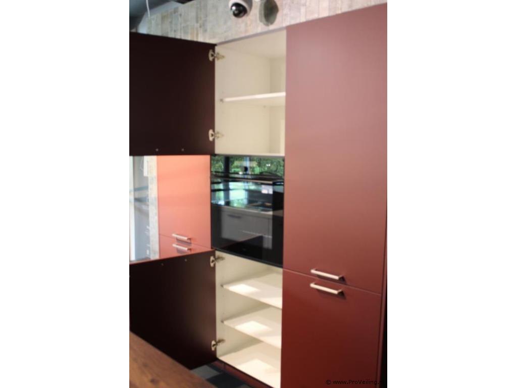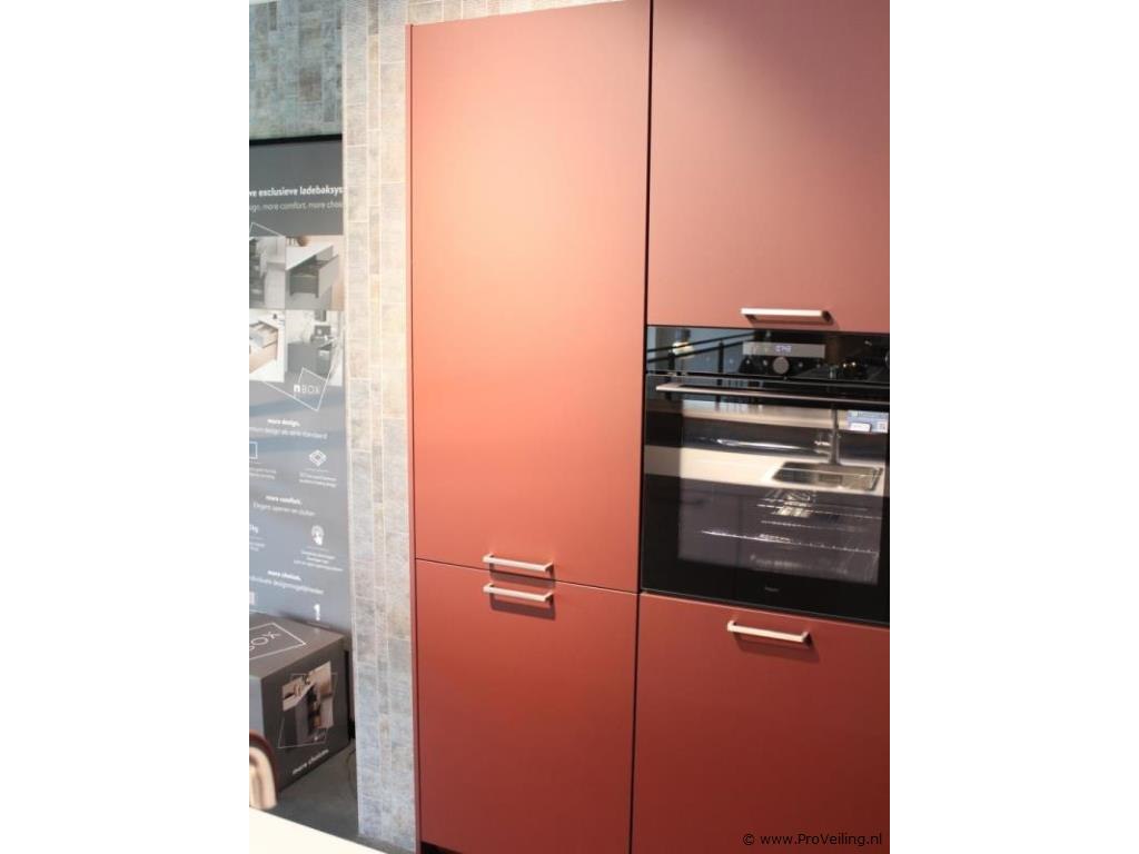 Merk: Nobilia Productnaam: 11 Type: Eilandkeuken met apparatenwand Model: Senso Frontkleur: Eiland Alpin wit - mat lak - apparatenwand frontkleur roestoranje (terracotta-look) Plintkleur: Alpin wit Grepen: Metalen beugelgrepen Afmetingen ca.: Apparatenwand 184 cm breed - 220 cm hoog Afmetingen ca.: Eiland 322 x 106 cm - werkblad hoogte 93 cm - barbladhoogte 105 cm Vaatwasser: Etna GVW100L - Volledig geïntegreerde inbouwvaatwasser - Breedte 45 cm - Capaciteit 10 couverts - Energieklasse D - Geluidsniveau 44 dB(A) - Waterverbruik ca. 9 liter per cyclus - 9 wasprogramma’s (o.a. Eco, Intensief, SpeedWash, halve belading) - Automatische deuropening (TotalDry) voor beter droogresultaat - Verstelbare bovenkorf, ook bij belading - RVS kuip - Aansluitwaarde 1900 W Kookplaat: Etna AKI680ZT - Inductiekookplaat met geïntegreerde afzuiging - Breedte 80 cm - Verzinkt inlaatrooster in Black Titanium - 4 kookzones waarvan 2 flexzones - Automatische afzuigmodus die zich aanpast aan kookintensiteit - Naloopfunctie voor geurverwijdering - Afzuigcapaciteit 205–600 m³/u - Geluidsniveau 42–66 dB(A) - Bedieningspaneel met Light & Slide-sliderbediening - Geschikt voor luchtafvoer en recirculatie - Aansluitwaarde ca. 7.400 W. Afzuigkap: Geïntegreerd in kookplaat Oven 1: Etna OPASC560ZWA – Inbouw oven 60 cm – Inhoud 77 liter – Energieklasse A+ – 12 ovenfuncties inclusief GentleBake, AssistSteam en Pizzastand – Temperatuurbereik 30-300 °C – ConnectLife WiFi-bediening – Pyrolyse zelfreiniging – AirFry bakmand inbegrepen – LED-display – Soft-close deur. Koelkast: ETNA?KCS5178 - Inbouw koel/vriescombinatie (sleepdeur) - Inhoud koelgedeelte 179 l - Inhoud vriesgedeelte 70 l - Totale inhoud 249 l - Energieklasse E - Geluidsniveau ca. 39 dB(A) - SuperCool-functie (snelkoelen) - FastFreeze-functie (snelvriezen) - Sleepdeursysteem voor meubeldeurmontage - LED-verlichting in koelgedeelte - Invertercompressor Werkblad: Nobilia kunststof blad met stootvaste werkbladrand - kleur Alpin Wit - barblad kleur 272 Balkeneiken Spoelbak: Strakke vierkante spoelbak met kleine hoekradius Kraan: Eén-hendel keukenmengkraan - hoog haakmodel - past emmer onder - kleur geborsteld rvs Conditie: Showmodel Bijzonderheden: U dient deze kavel zelf te demonteren - Zonder afgebeelde accessoires / materialen (Diversen) op en in de keuken Ter waarde van: € 19775 Productbeschrijving: Stijlvolle kwaliteitskeuken uitgevoerd in de kleurencombinatie frontkleur roestoranje (terracotta-look) met mat wit – robuust Balkeneiken werkblad – ruimte voor 2 barkrukken aan het eiland – extra kastruimte aan de kamerzijde – aluminium beschermbodem in spoelkast – royale servieskast met veel bergruimte – moderne RVS spoelbak met bijpassende mengkraan – compacte opstelling met optimaal gebruik van ruimte. Demontage 1: U dient deze kavel zelf te demonteren - planning is op zaterdag 13 december of eerder in overleg - Deze keuken kavel staat op 1e etage, goederenlift is aanwezig Demontage 2: Demontage en bezorging van deze keuken is mogelijk. Neemt u contact op met onze servicedesk via: info@proveiling.nl voor meer informatie. Conditie: Showroommodel Garantie: Wettelijke fabrieksgarantie.