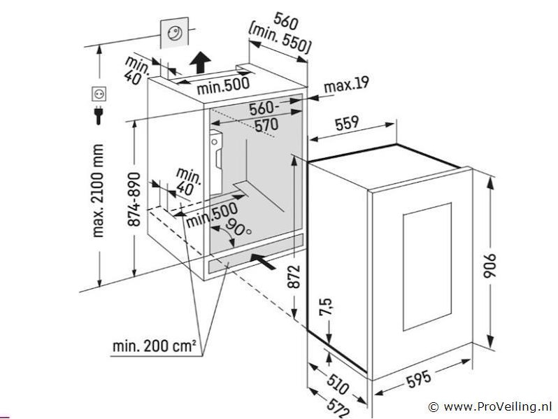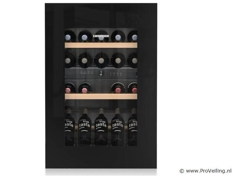 Merk: Liebherr Type: inbouw wijnkast Model: 1683-21 Conditie: Nieuw in originele verpakking Bijzonderheden: Deze kavel staat op 1e etage, goederenlift is aanwezig Ter waarde van: € 3279 Productbeschrijving: Volledig geïntegreerde inbouw-wijnkast van Liebherr - Geschikt voor ca. 34 flessen (0,75 l) - 2 temperatuurzones afzonderlijk instelbaar van 5 – 20 °C - VibrationSafe-systeem voor trillingsvrije opslag van wijn - UV-werende glazen deur met SoftSystem deursluiting - Actieve koolfilter voor optimale luchtkwaliteit in het interieur - LED-verlichting over de volledige hoogte, afzonderlijk schakelbaar - Touch-display met digitale temperatuurweergave - Houten draagplateaus op uittrekbare geleiders - Energieklasse G, geluidsniveau ca. 32 dB - Inbouwafmetingen (nis): hoogte 88–89 cm, breedte 56–57 cm, diepte 55 cm - Kleur/afwerking: zwart interieur met glazen frontdeur