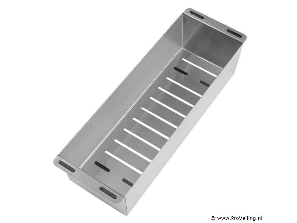 Merk: Loreine Type: Inzetbak voor spoelbak Model: Colan Conditie: Nieuw Ter waarde van: € 89 Productbeschrijving: Lorreine inzetbak voor spoelbak Colan - Praktisch accessoire voor het wassen, spoelen en uitlekken van groenten of bestek - Speciaal ontworpen voor de Lorreine Colan-serie spoelbakken - Gemaakt van hoogwaardig roestvrij staal (RVS) - Fijn geperforeerde bodem voor optimaal waterafvoer - Stevige, dubbele rand voor stabiele plaatsing in de spoelbak - Eenvoudig uitneembaar en vaatwasmachinebestendig - Past perfect in moderne keukens met RVS of granieten spoelbakken