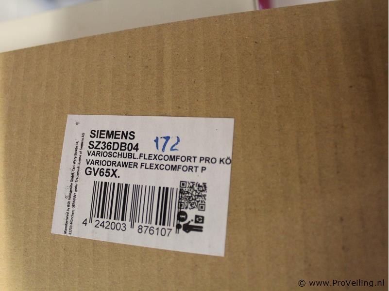 Merk: Siemens Type: VarioDrawer voor vaatwassers Model: SZ36DB04 Conditie: Nieuw Ter waarde van: € 139 Productbeschrijving: Siemens SZ36DB04 – VarioDrawer voor vaatwassers uit de GV65-serie - Originele besteklade / derde korf voor Siemens inbouwvaatwassers - Geschikt voor modellen uit de GV65-serie (volledig geïntegreerde vaatwassers) - Biedt extra ruimte voor bestek, espressokopjes en klein keukengerei - Vervaardigd uit hoogwaardig kunststof en metaal voor duurzame kwaliteit - Uittrekbaar en soepel lopend dankzij geïntegreerde geleiders - Maakt de onderste rekken vrij voor groter servies of pannen - Eenvoudig uitneembaar voor schoonmaak en flexibel in te delen - Kleur: donkergrijs / zilvergrijs – passend bij Siemens interieurdesign - Origineel Siemens-accessoire – gegarandeerde pasvorm en kwaliteit